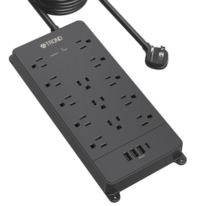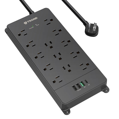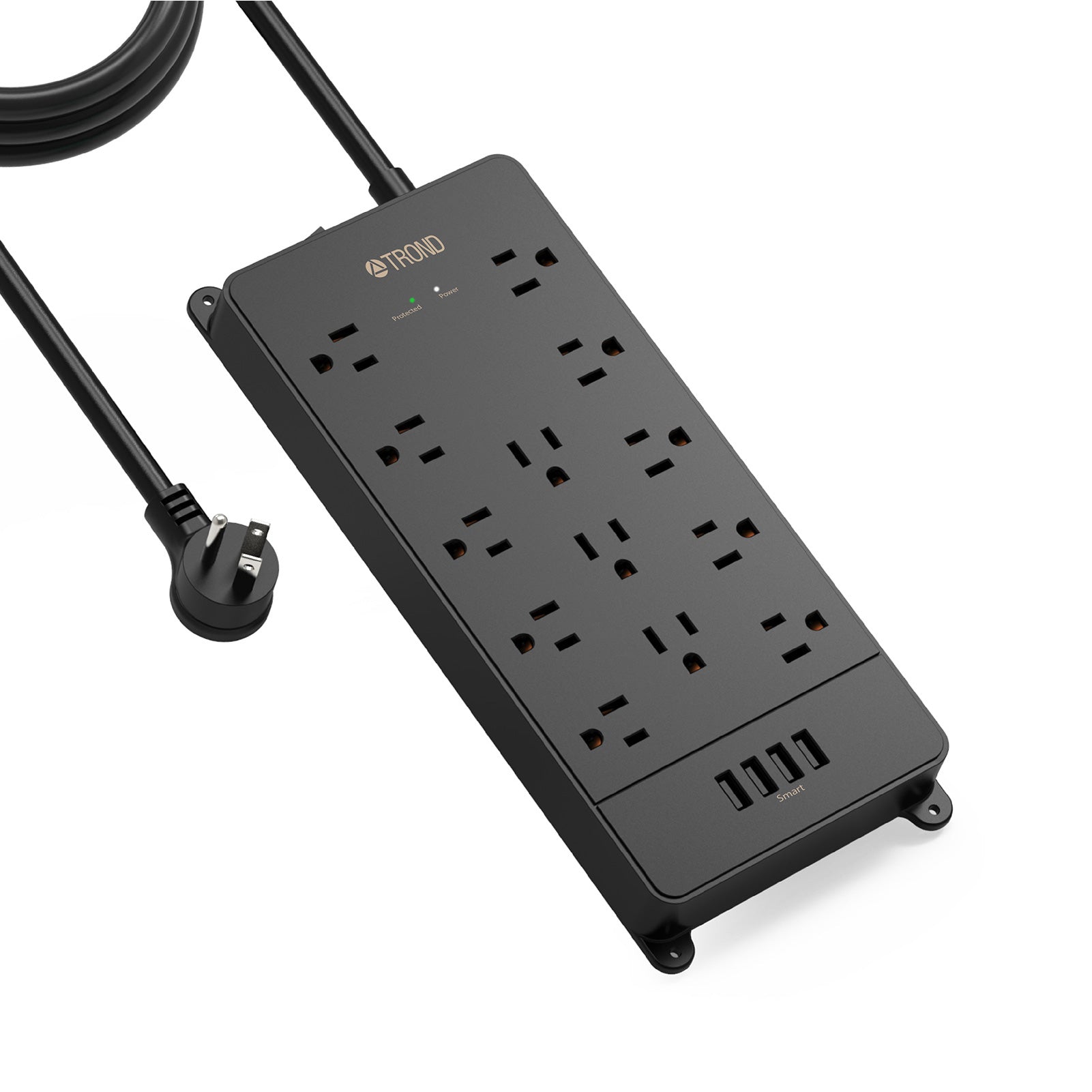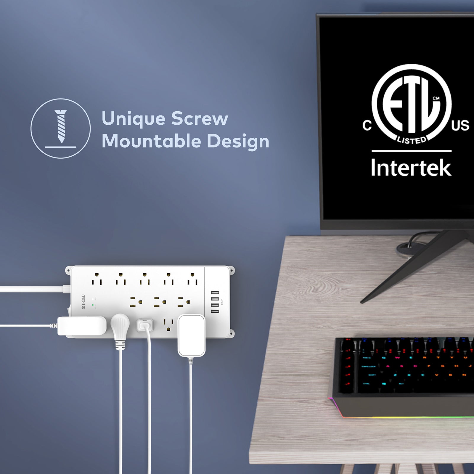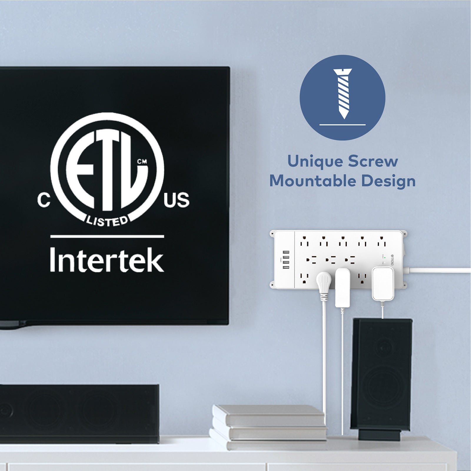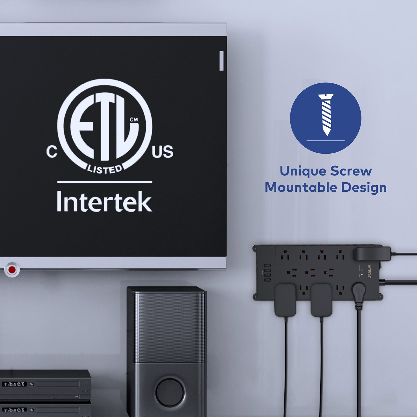 Wall mountable design. 4 screw-mounting tabs allows you to securely install this surge protector power strip in various applications, including entertainment center, behind tv, dorm room, guest room, garage, desktop, under desk/counters, workbenches, etc.