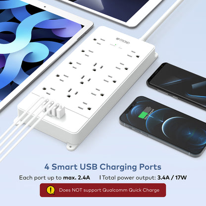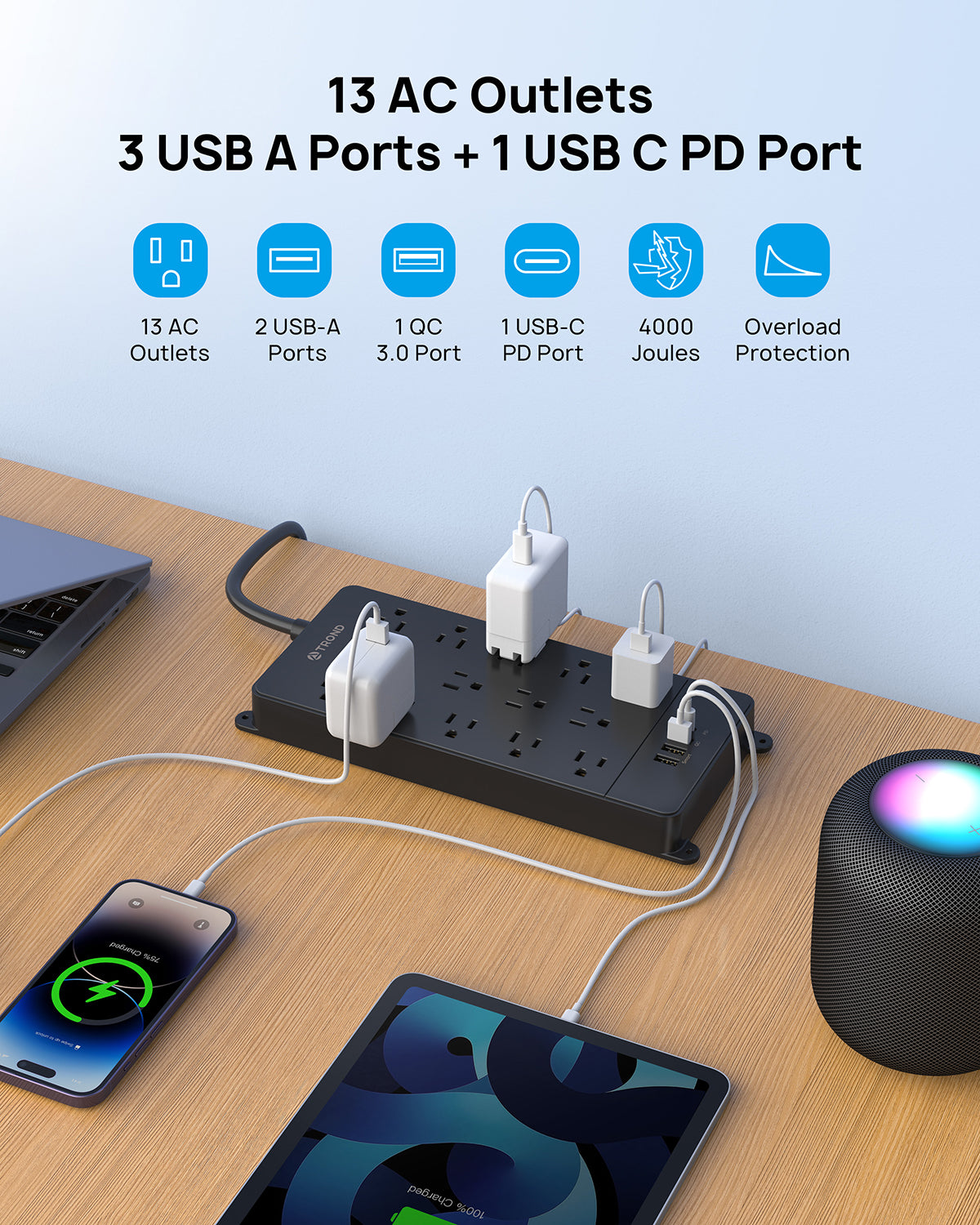 Power strip surge protector. Etl listed, this massive outlet expansion features 13 ac outlets and 4 usb charging ports(17w total usb output), which provide power and charging for up to 17 devices from a single wall outlet. Max.power: 1875w (125v~15a)