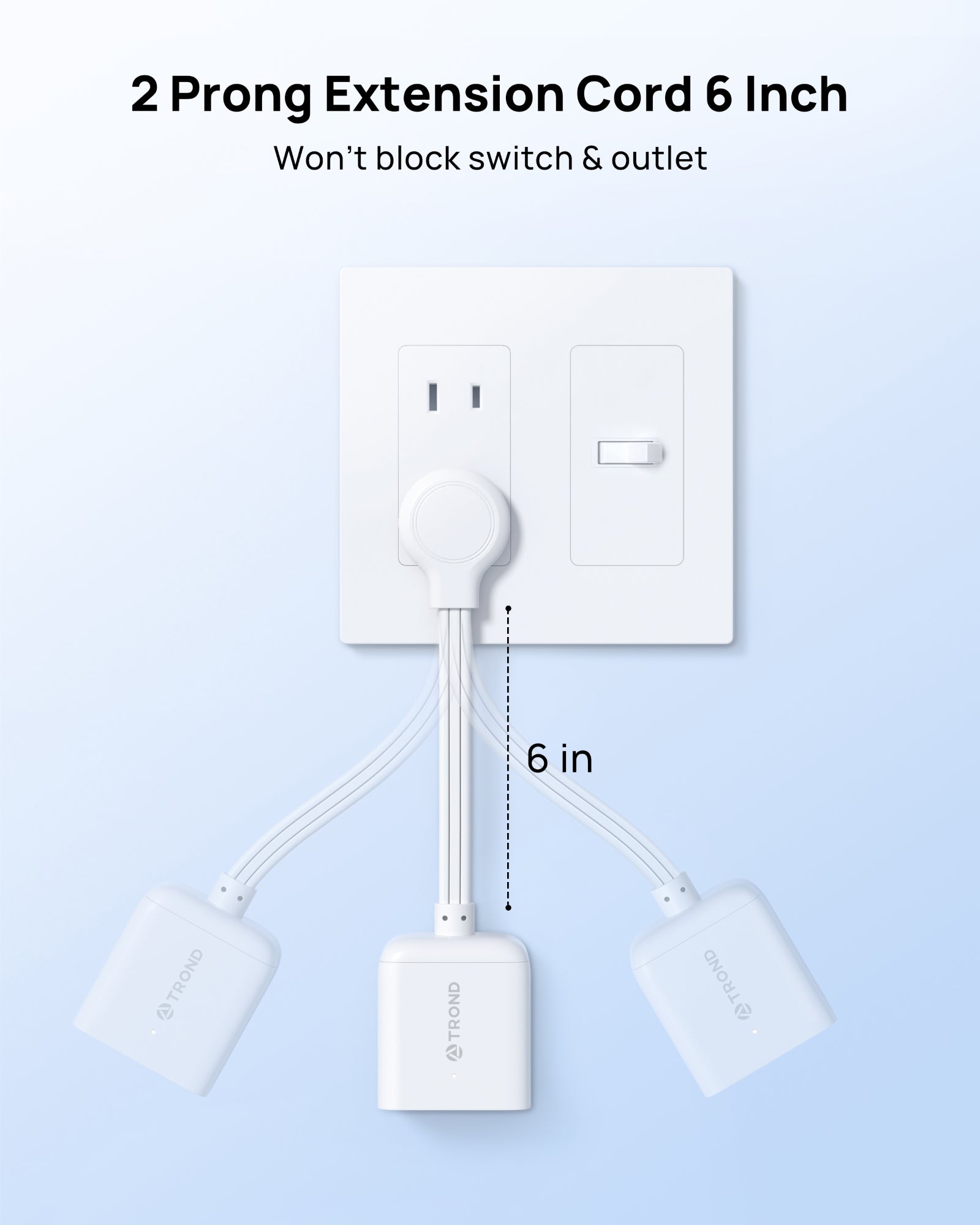 【Extendable Outlet with 6 Inch Cord】Certified by FCC & RoHS, made of the top-grade UL94 V-0 flame-retardant PC & ABS material, and crafted with SPT 14/3 gauge cable, the 3 prong to 2 prong adapter is safe to use and always provides stable and secure power for your devices. Max.1875W (125V/15A)