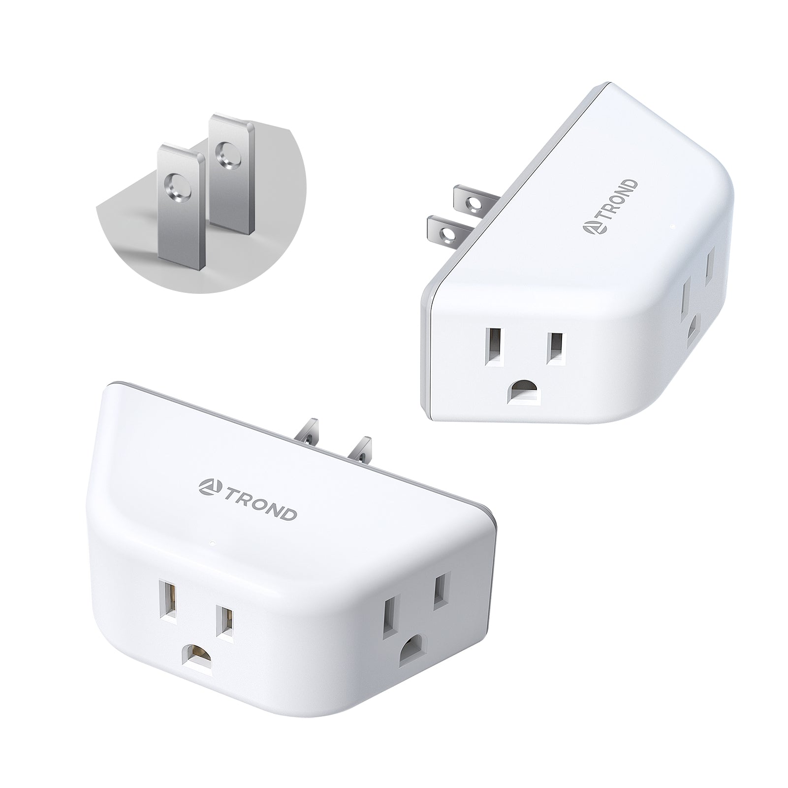 【No Blocking】The 2-prong outlet extender allows you to use all outlets simultaneously without obstructing the adjacent outlet. This plug adapter does not occupy the space of the second outlet plug. When plugged into the upper outlet, the lower one remains available for use.
