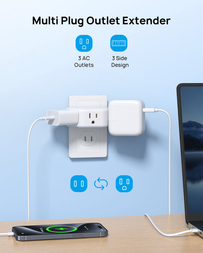 【Compact and Portable】Measuring at just 3.48 x 1.73 x 1.42 inches, the compact size of this outlet extender is perfect for your business trips or travels. It is designed to save space, making it especially suitable for tight spaces such as behind the couch or furniture.