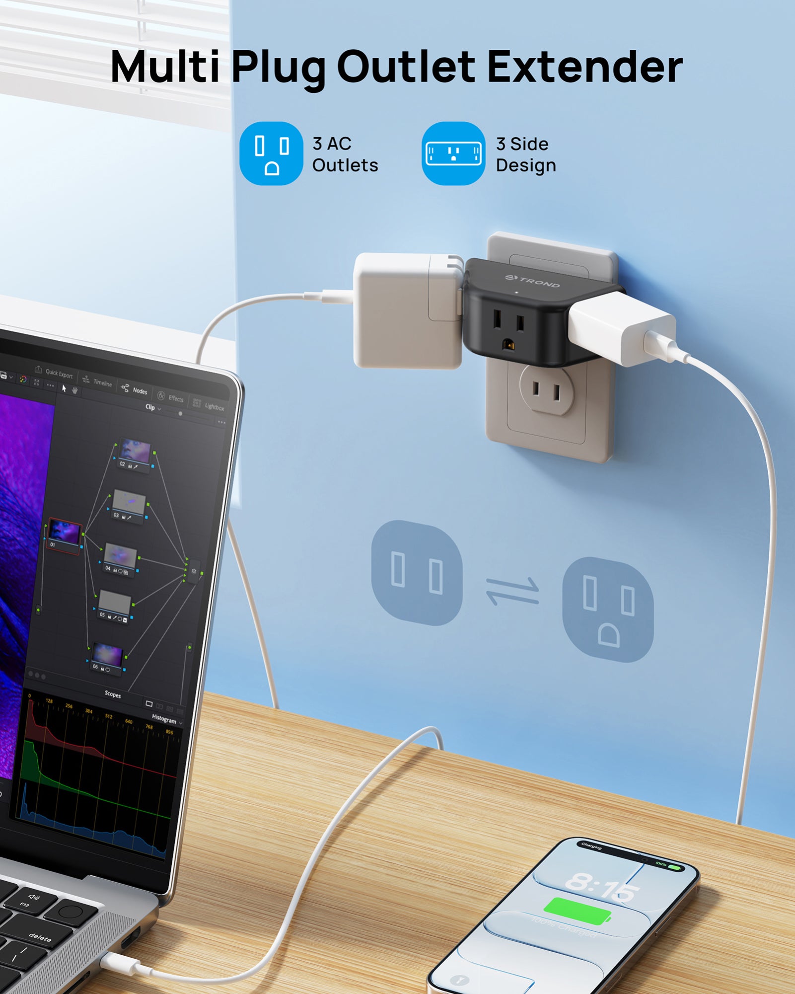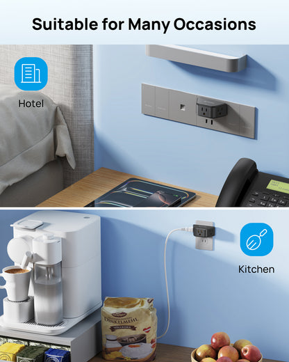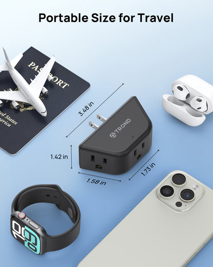 【Compact and Portable】Measuring at just 3.48 x 1.73 x 1.42 inches, the compact size of this outlet extender is perfect for your business trips or travels. It is designed to save space, making it especially suitable for tight spaces such as behind the couch or furniture