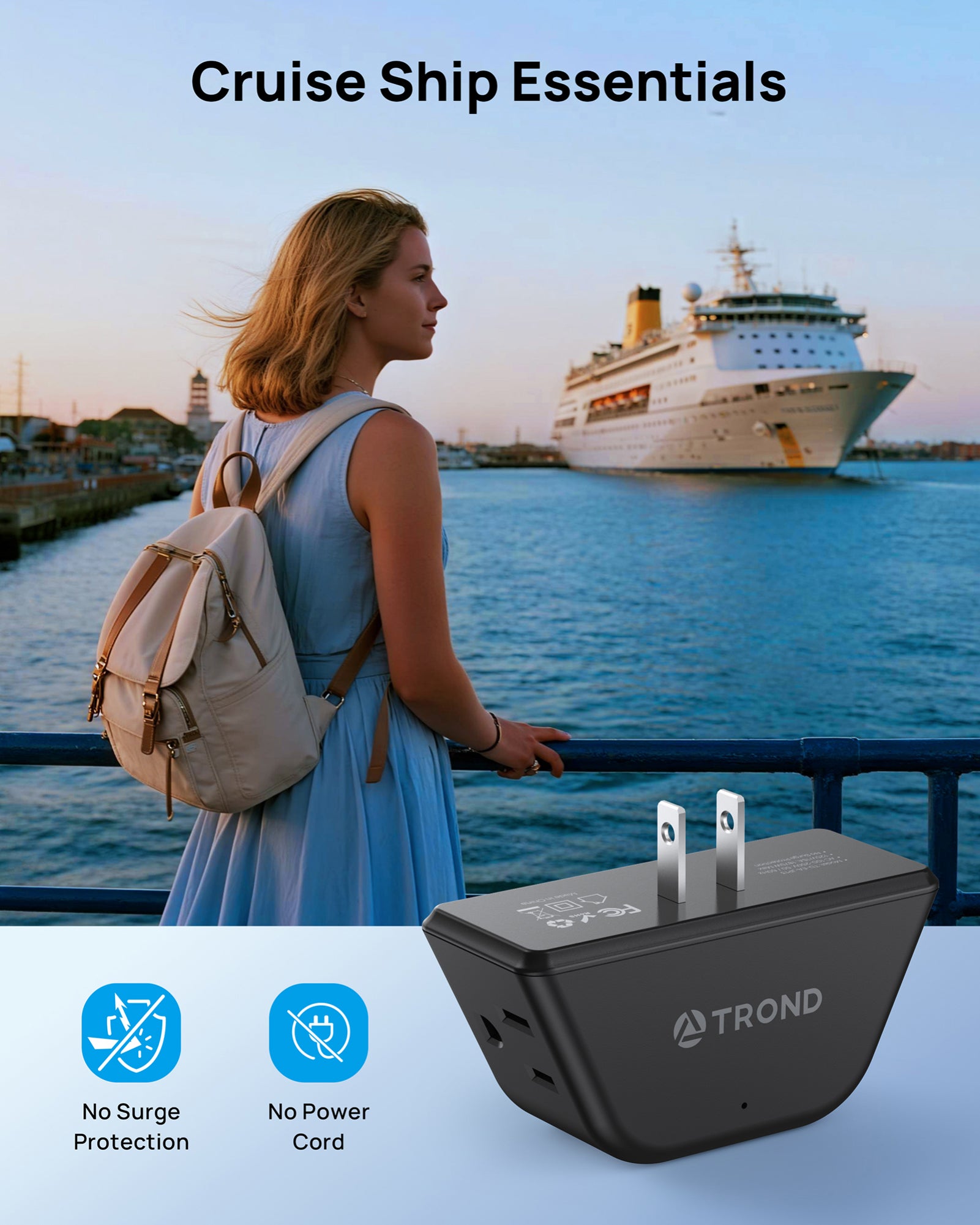 【Cruise Essentials】This 2 to 3 prong outlet splitter does not feature surge protection or cords, making it fully approved for use on cruise ships. It effectively solves the problem of using appliances on a cruise