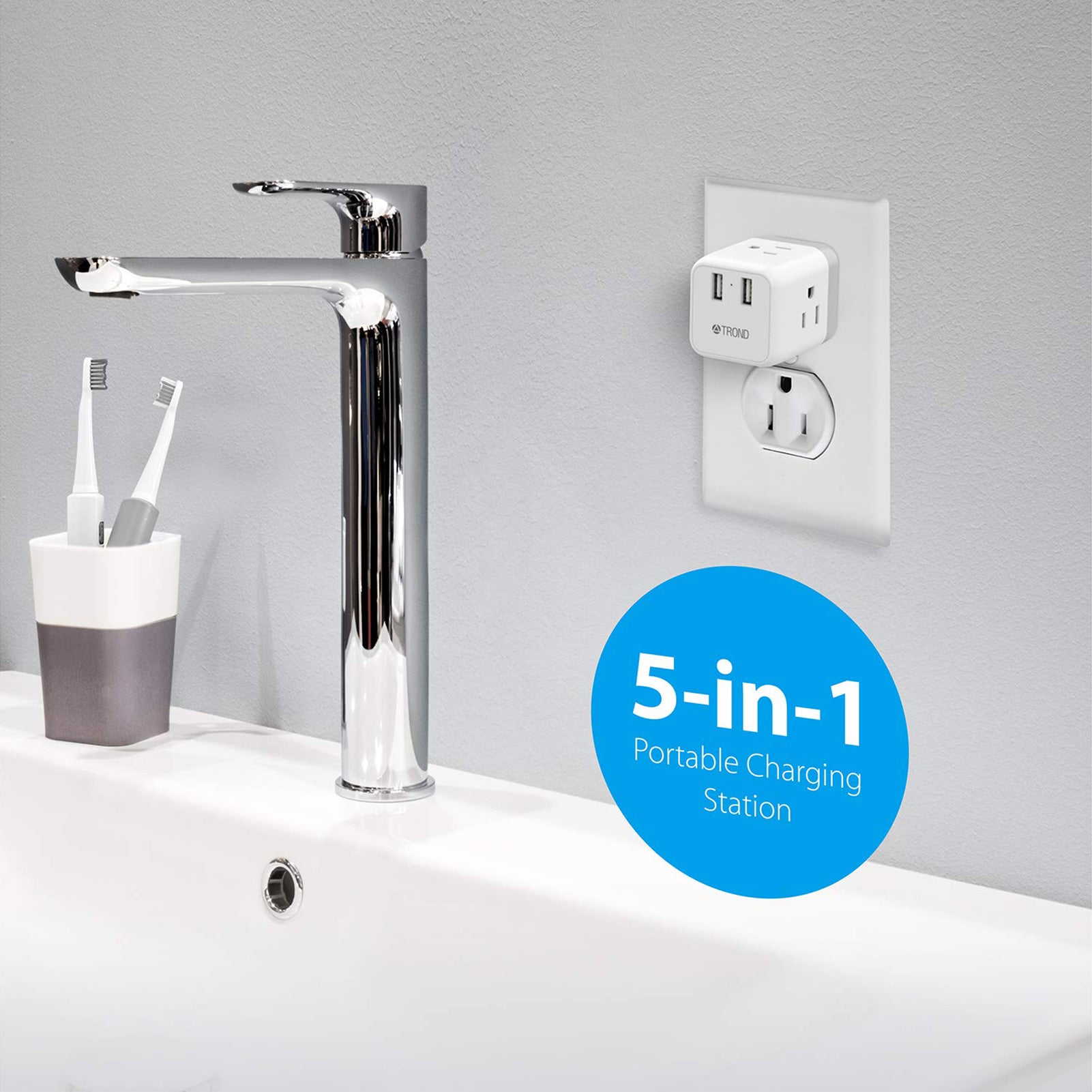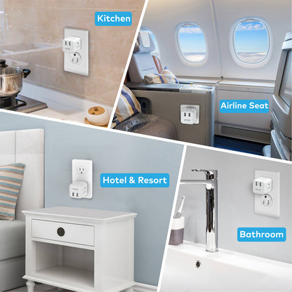 ETL listed, this outlet extender features 3 grounded AC outlets and 2 USB charging ports, ideal for charging laptop, cell phone, iPad, AirPods, camera, warmer, toothbrush, lighted mirror, etc.