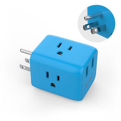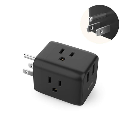 This outlet expander has a mini cube design (2.40” x 1.97” x 1.97”), which helps to save your precious luggage space, and makes a great travel companion for you on the road. No need to take additional USB phone charger while traveling.
