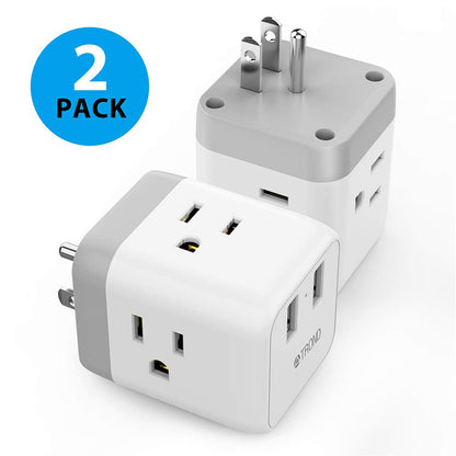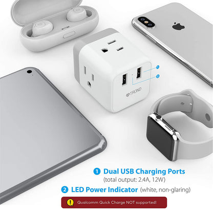 1. USB wall outlet extender. ETL listed, it features 3 grounded AC outlets and 2 USB charging ports (2.4A total output), ideal for charging laptop, iPhone, iPad, AirPods while traveling or at home. Quick Charge NOT supported; max.power: 1875W, 125V~15A