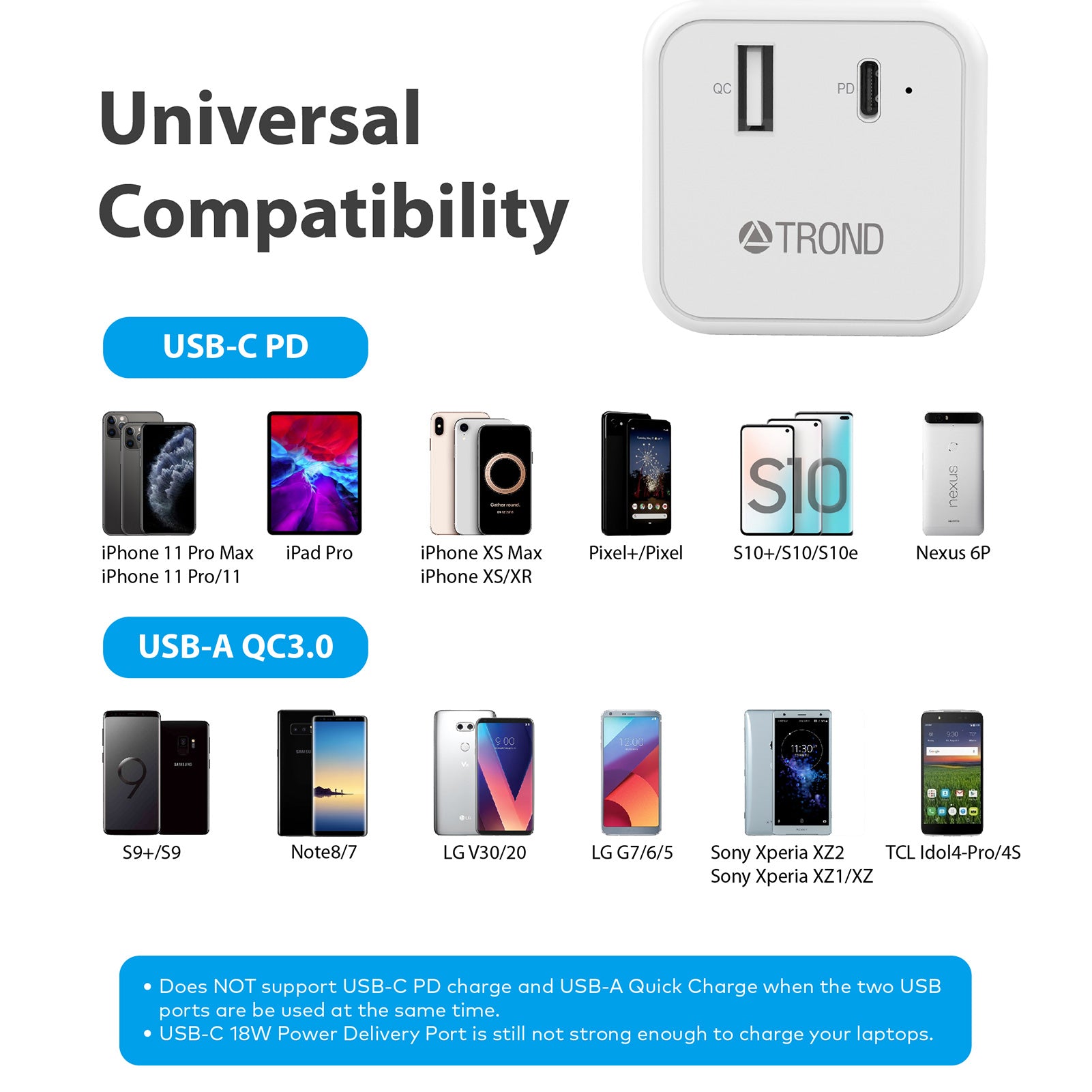 2. USB C wall charger. The usb-c pd port delivers an 18w high-speed charge to usb-c phones and tablets, including iphone & ipad. For iphone 11, please use a usb-c to lightning cable to enjoy the fast charging speed