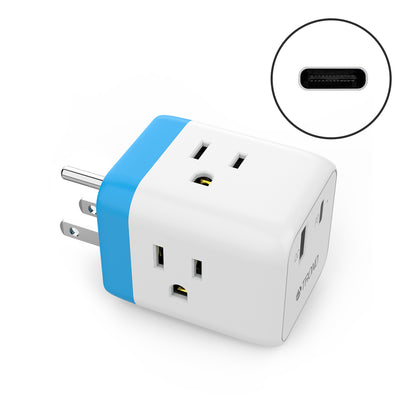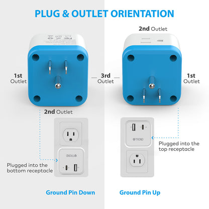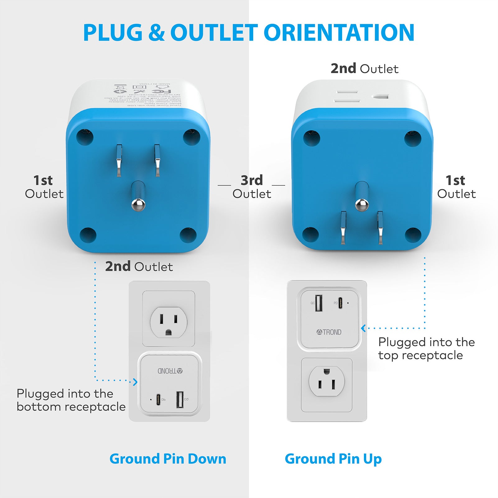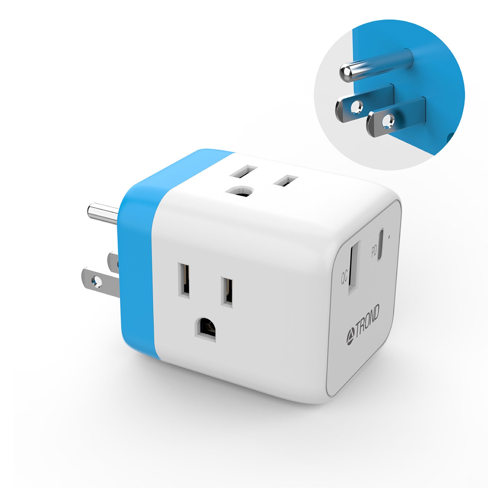 1. Electrical outlet extender USB. Features 3 grounded ac outlets and qc 3.0 & usb c power delivery ports (18w total output), ideal for charging laptop, iphone, ipad, airpods while traveling or at home. Max.power: 1875w, 125v~15a; etl listed