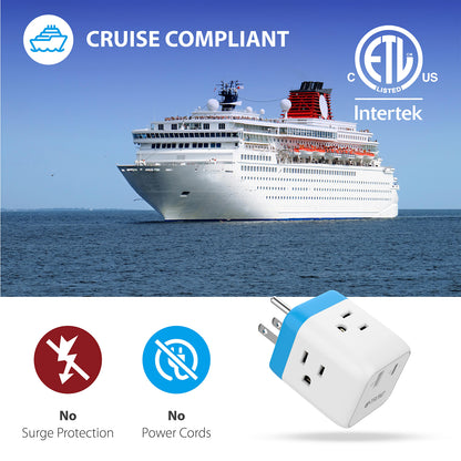 4. Cruise ship accessory must-have. Most cruise ships don’t allow surge-protected power strips on board for safety reasons. This wall tap is designed with non-surge, compliant with major cruise lines - carnival, royal caribbean, princess, disney, etc