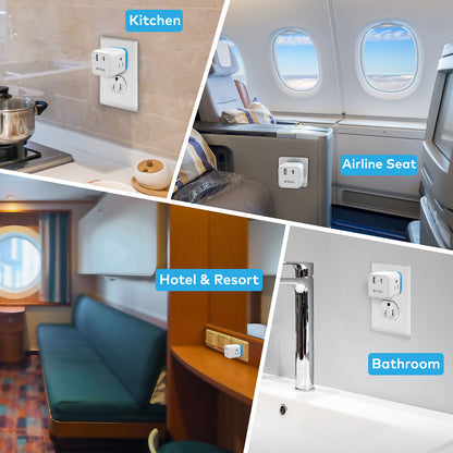 Measured only at 2.40” x 1.97” x 1.97”, it’s extremely compact and doesn’t block the other receptacle of the duplex wall outlet in your kitchen, bathroom or study room at home. Its mini cubic design (patent-pending) helps to save your precious luggage space and makes a great travel companion for you on the road.