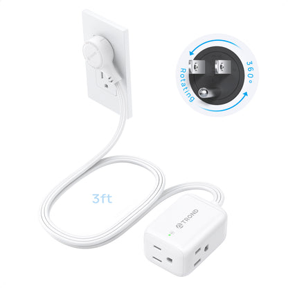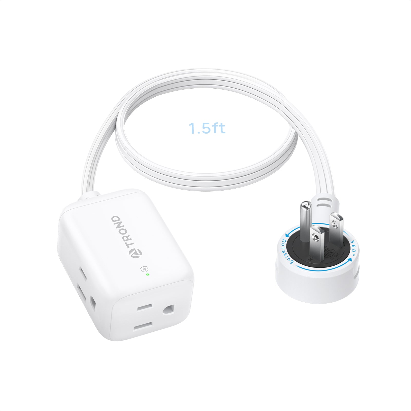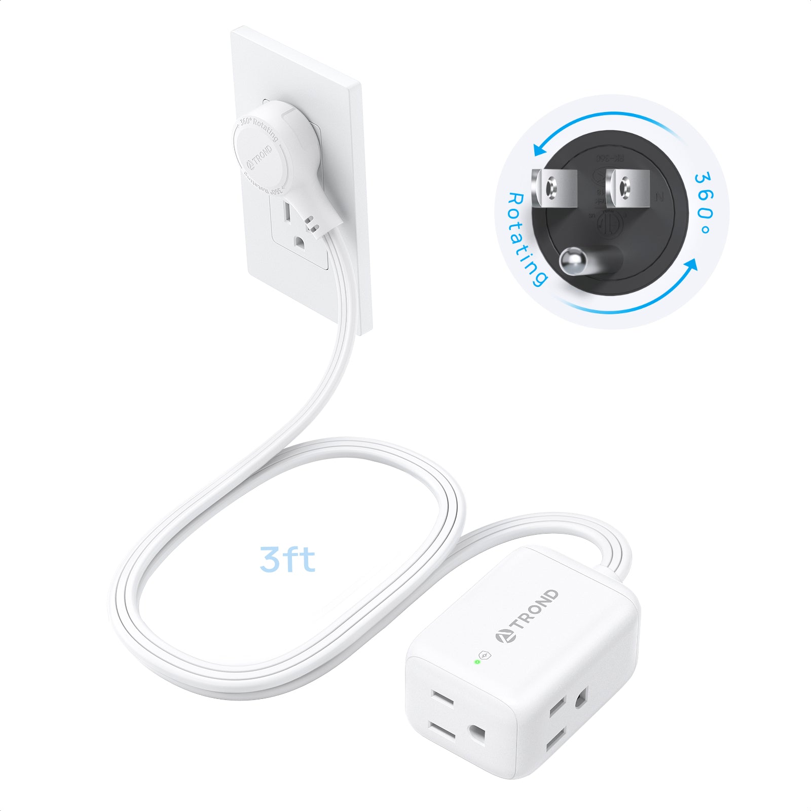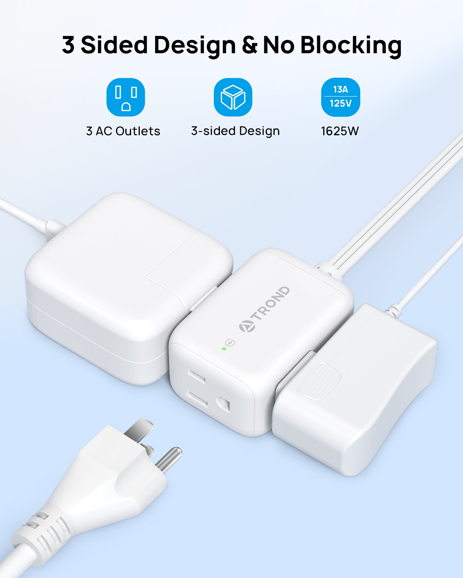 【Sleek 3-Sided Power Cube】Unlike traditional extension cord strips, the smart-looking electric indoor extension cord features 3 grounded outlets on different sides, allowing you to use all three outlets simultaneously without any hassle. Max 1625W (125V/13A).
