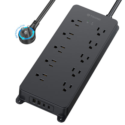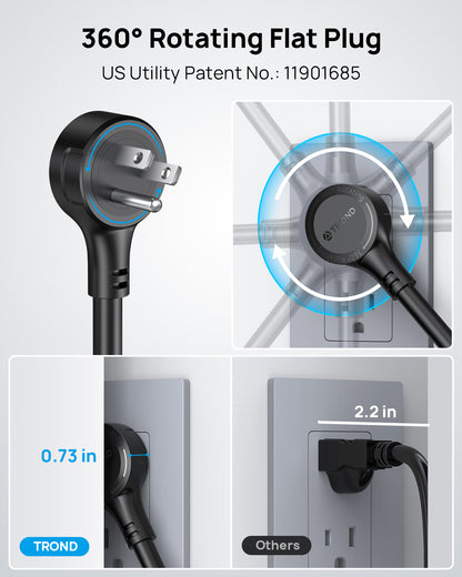 【360° Rotating Flat Plug】This power strip features a swivel plug (0.73 inches in thickness), and the unique rotating design allows the plug to adjust to any angle, providing more flexibility and convenience in tight spaces. US Utility Patent No.: 11901685