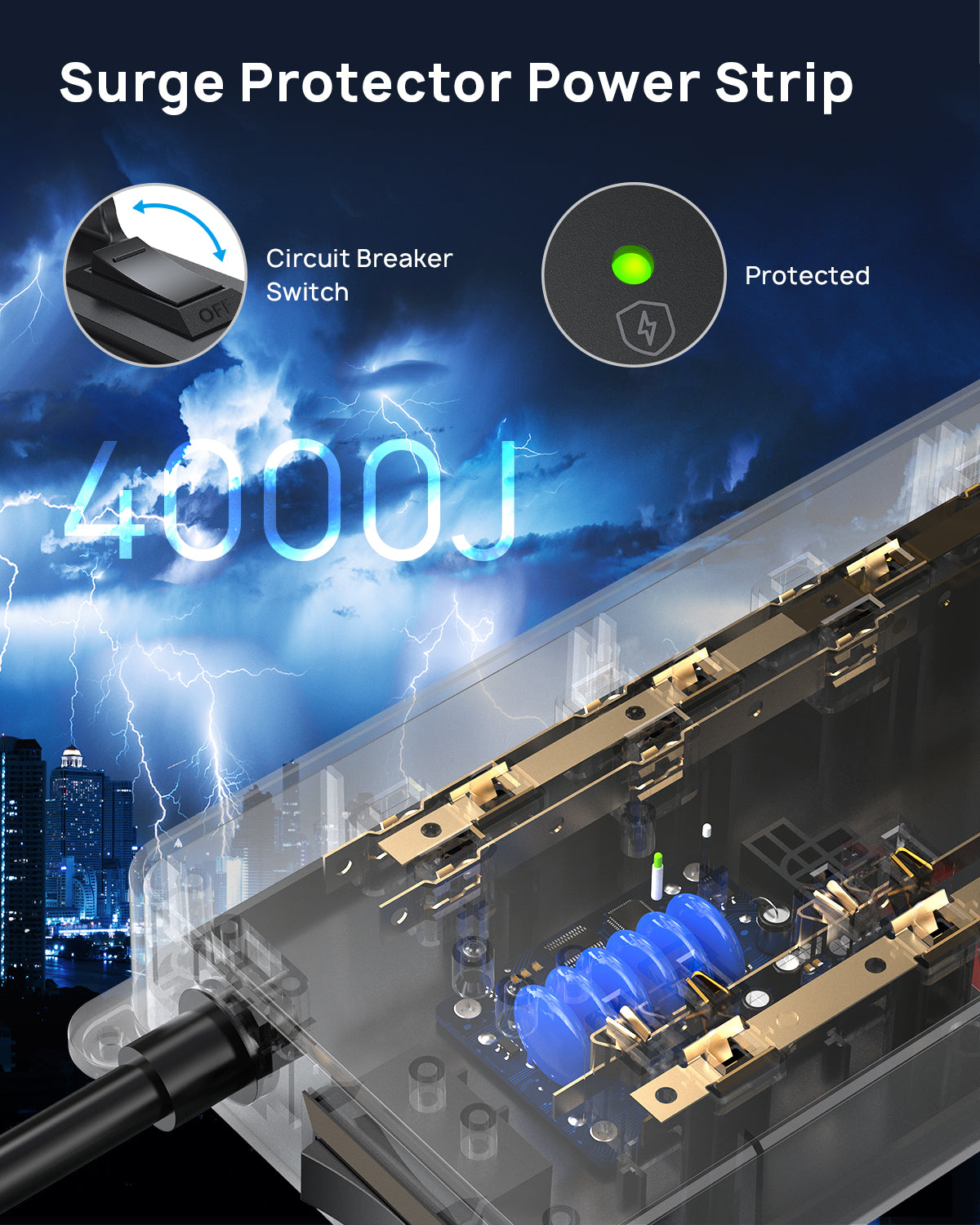 【4000 Joules Surge Protection】This ETL-listed surge protector is made from high-quality UL94 V-0 flame-retardant material. With a high surge protection rating, it helps safeguard your electronics from power spikes, surges, and lightning strikes