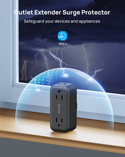 【Surge Protector Outlet】This multi plug outlet offers 900J surge protection, providing peace of mind for your valuable electronics and appliances. Being made of UL94 V-0 Flame-Retardant PC+ABS, which improves the safety and durability of this rotating plug surge protector