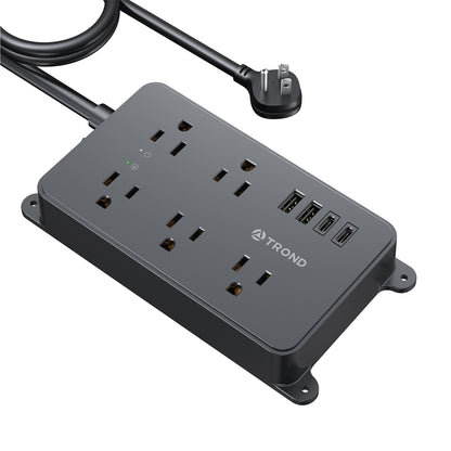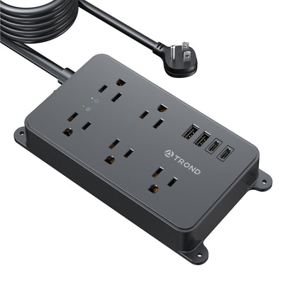 【Wall Mountable Power Strip】This wall mount power strip features a screw-mountable design with four mounting tabs, allowing you to securely install it in easily accessible locations such as behind the TV, on a workbench, in the garage, bedside, bathroom, laundry room, or under a desk or cabinet. Its low-profile design helps save valuable desktop space