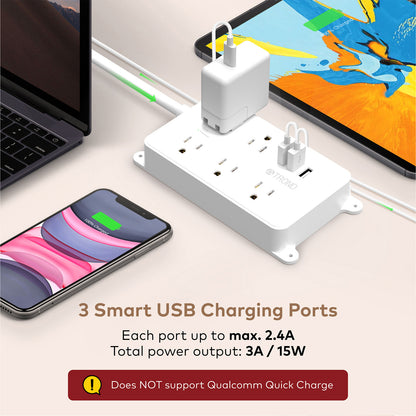 - 8-in-1 surge protector with usb. It expands one wall socket into 5 surge-protected outlets & 3 usb charging ports, which eliminates the need for multiple chargers and easily charges up your phone, iwatch. Qualcomm quick charge not supported