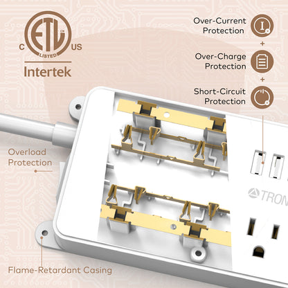 5-Outlet Surge Protector w/ 3 USB Ports, 1300J White