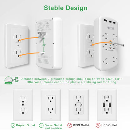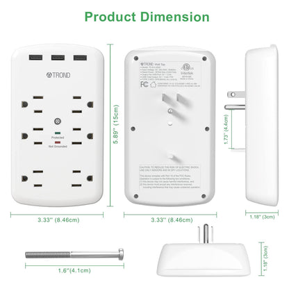 6 Outlet Surge Protector Wall Plug with 3 USB Ports