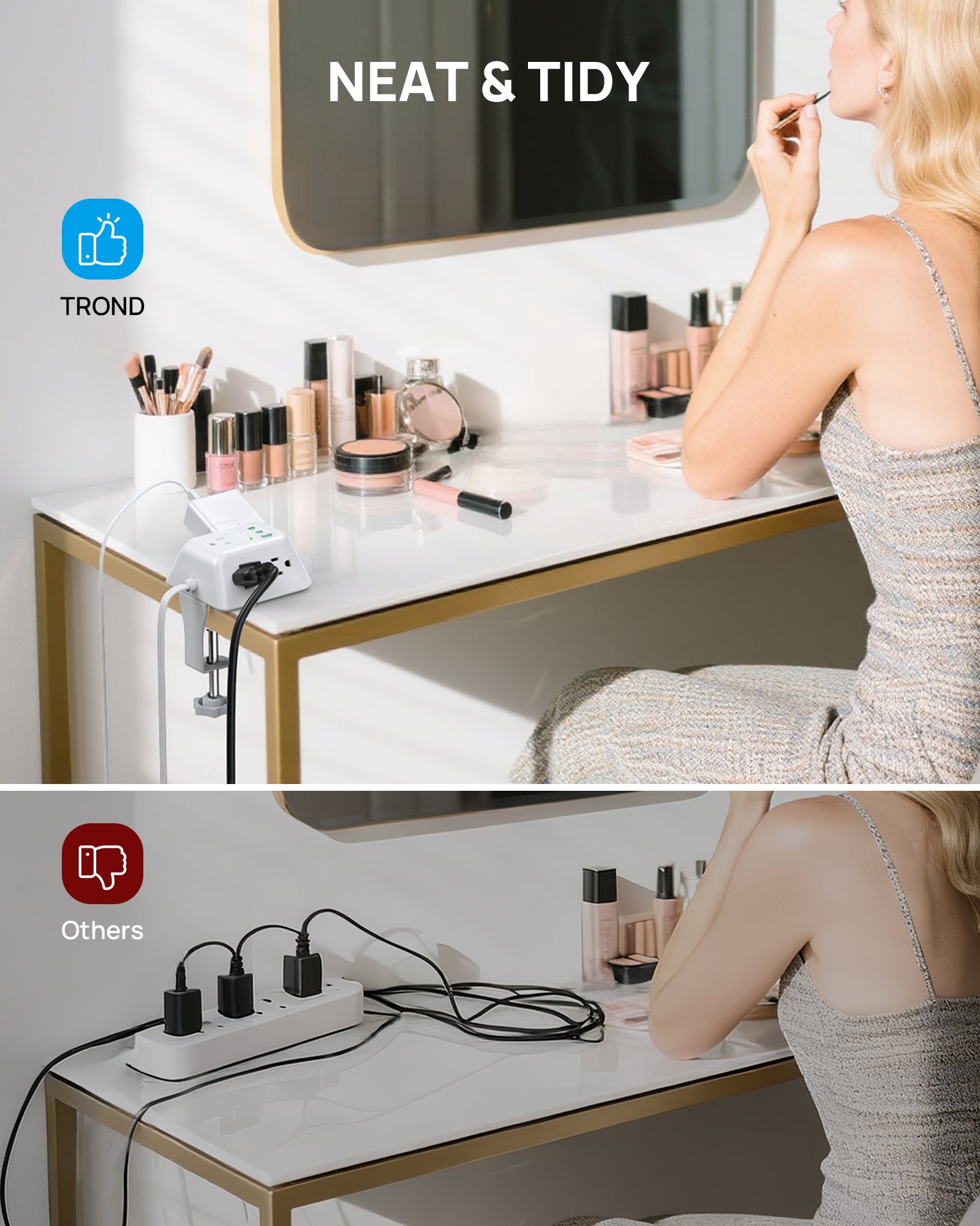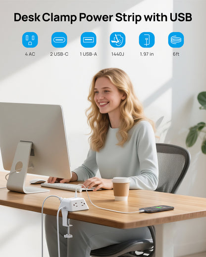 【Power Strips with Surge Protection】This power strip provides reliable protection for your valuable electronics at home and office, with a robust 1440-joule surge energy rating. The desk mount power strip effectively defends against potential damage from voltage fluctuations, power surges, and spikes