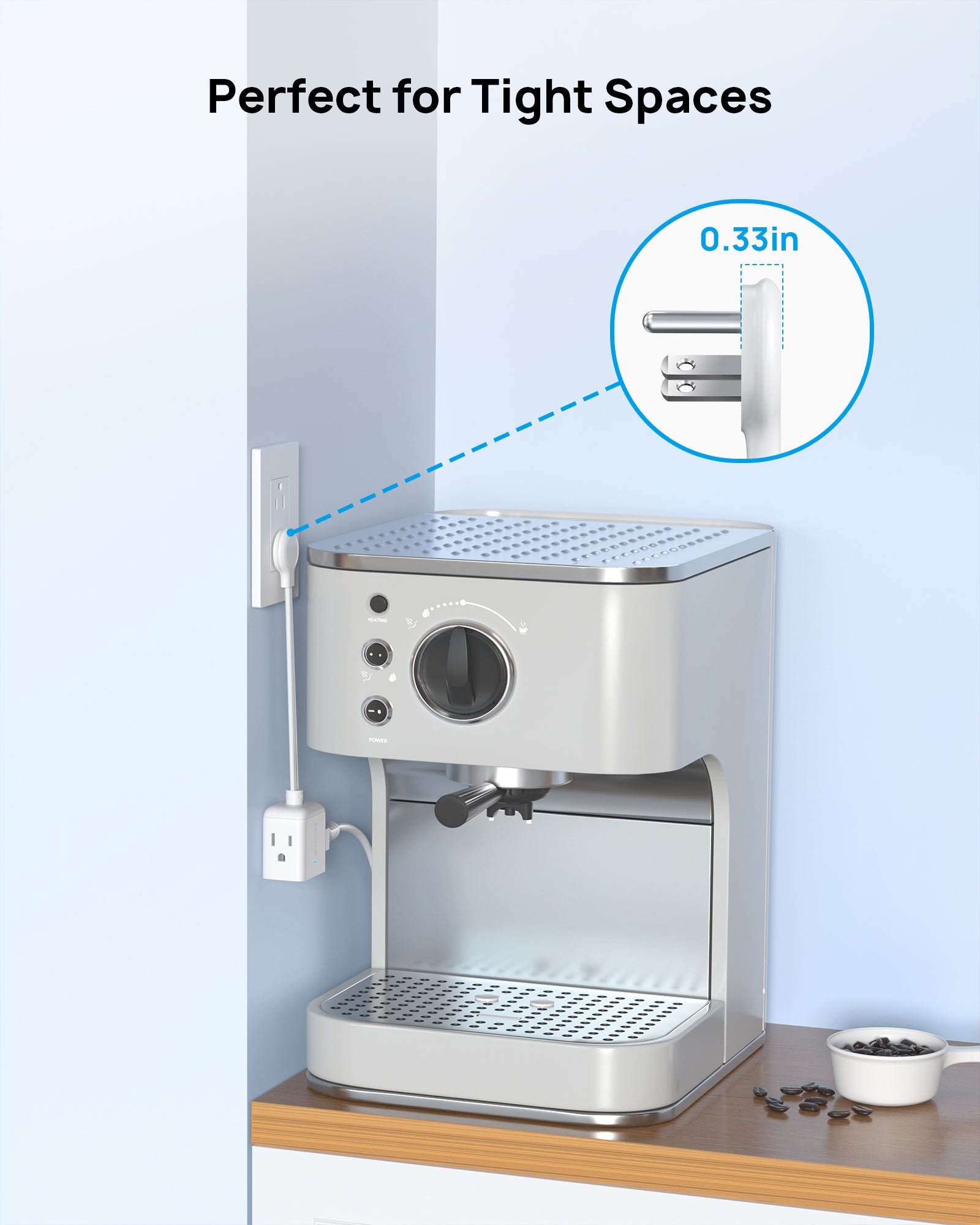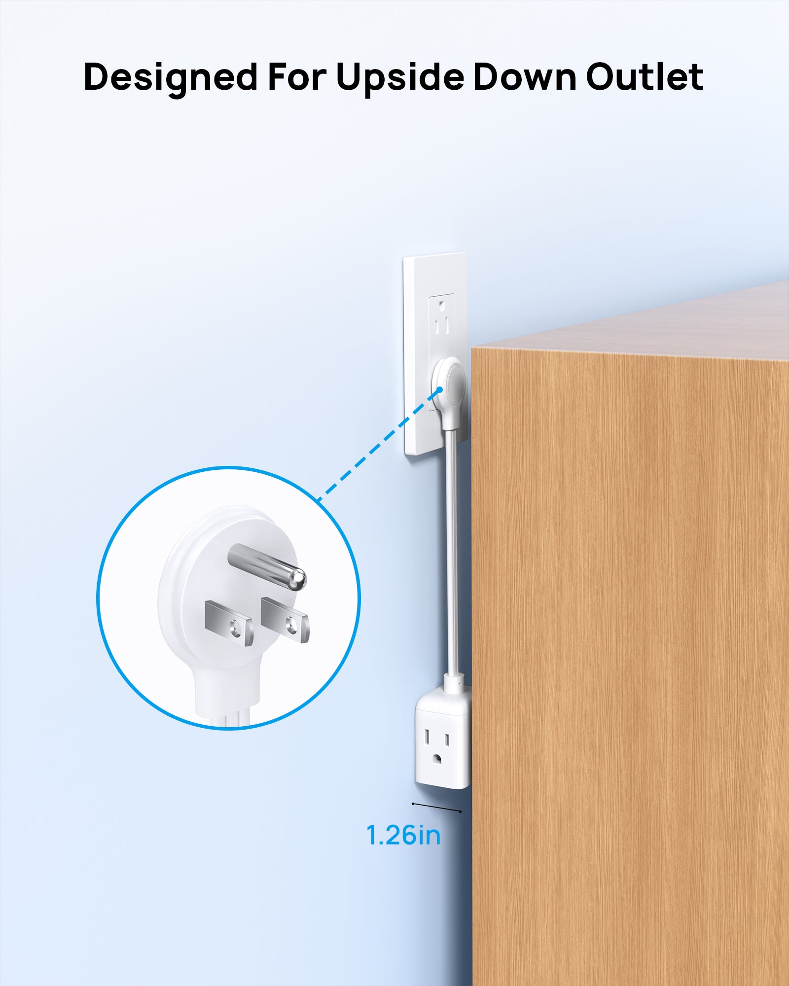 【Perfect for Tight Spaces】Measured at 1.26" depth and with a 0.33” low-profile plug, the flat wall outlet extender lay flush against the wall and is grear for tight areas like behind dresser, couch, kitchen appliances, and decorative objects