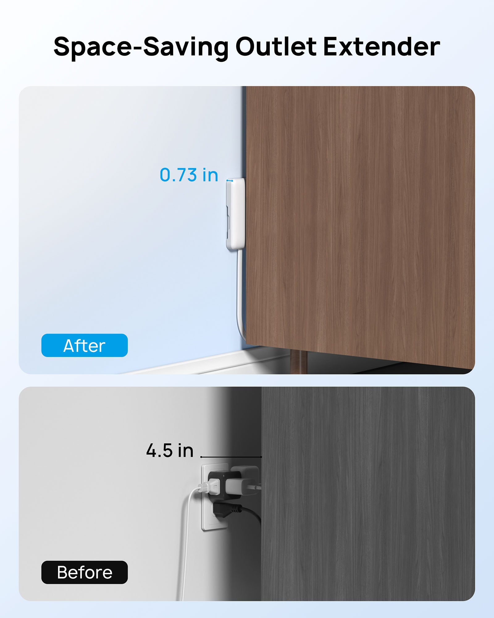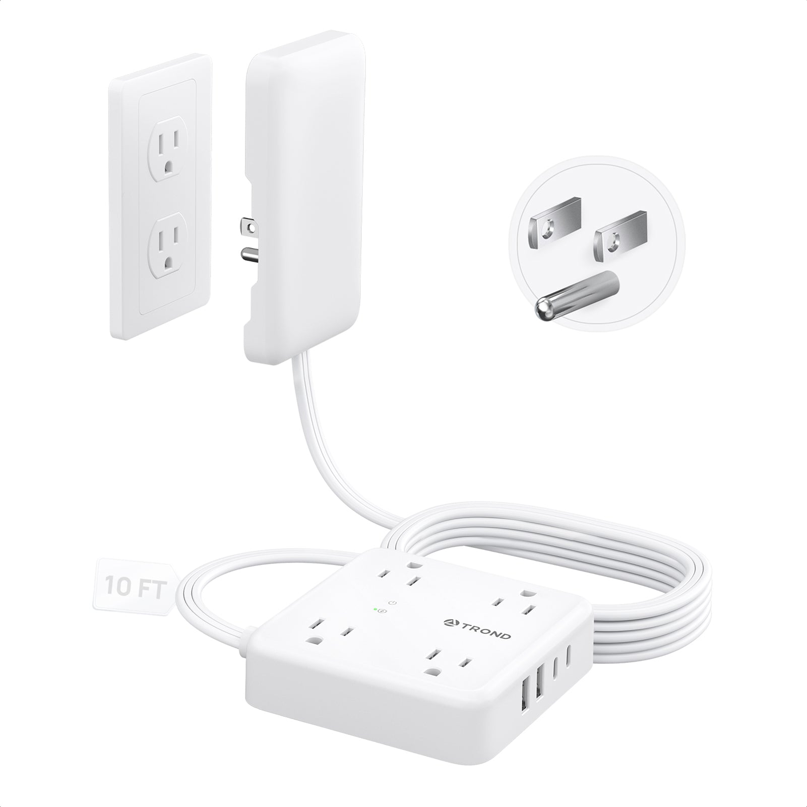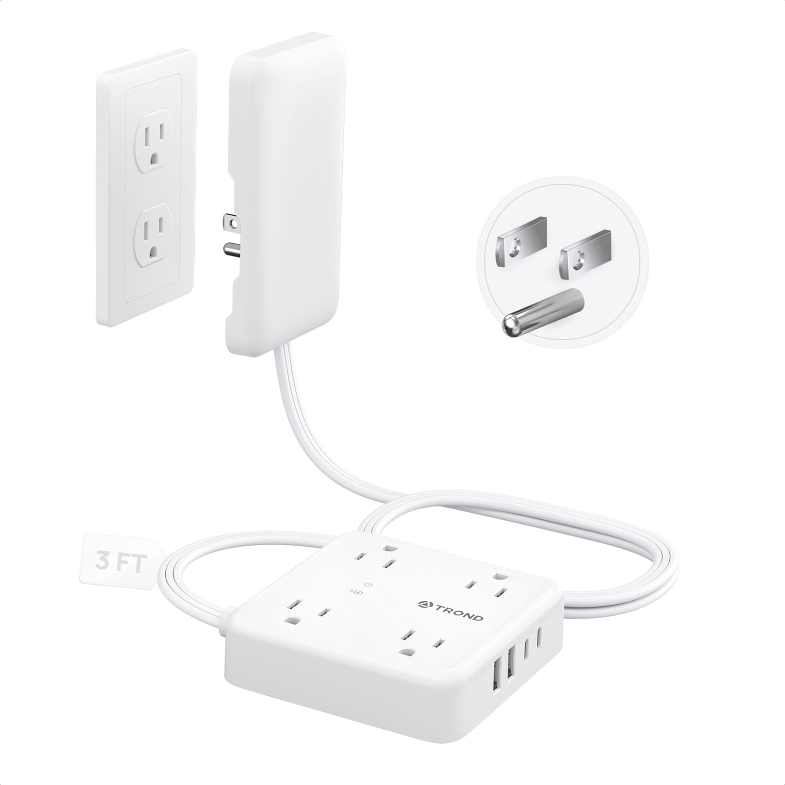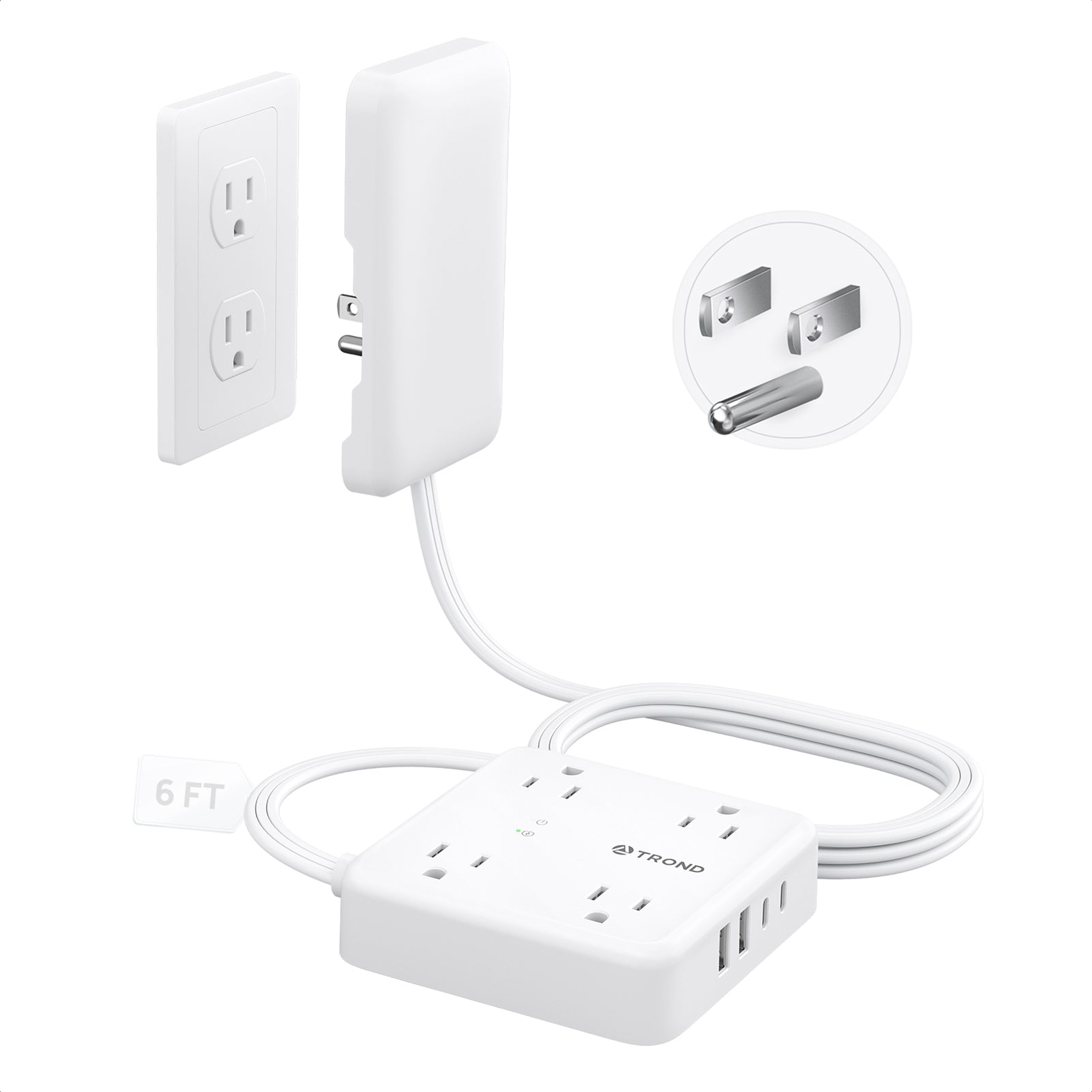 【Flat Extension Cord with Outlet Cover】TROND outlet concealer extension cord hides wall plugs completely, fixing the mess of wires and making the room tidy. Its slim and sleek design allows you to push furniture (beds, sofas, cabinets) flush against walls. So you won't have to sacrifice outlet access for furniture placement. Flat wall plug measured at 5.51" x 3.15" x 0.73"