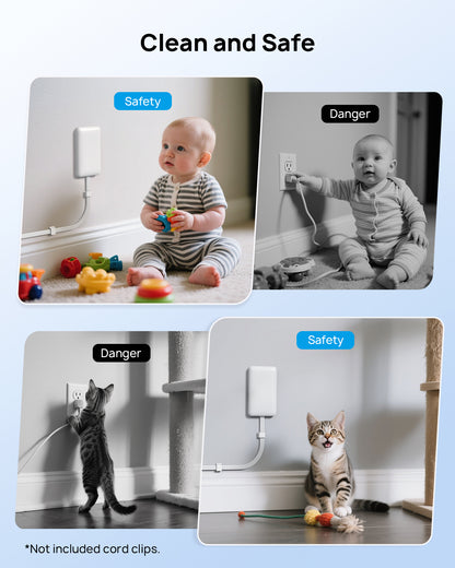 【Hide Plug-ins From Kids and Pets】If you are concerned about your dog chewing plugs, your cat scratching cords, or your toddler getting hold of any plugs or cords, this TROND flat face outlet extender is ideal for you. It will discreetly conceal the entire wall outlet without ugly protruding wires to be noticed and messy bulky plugs to be touched. Simple, clean, and safe