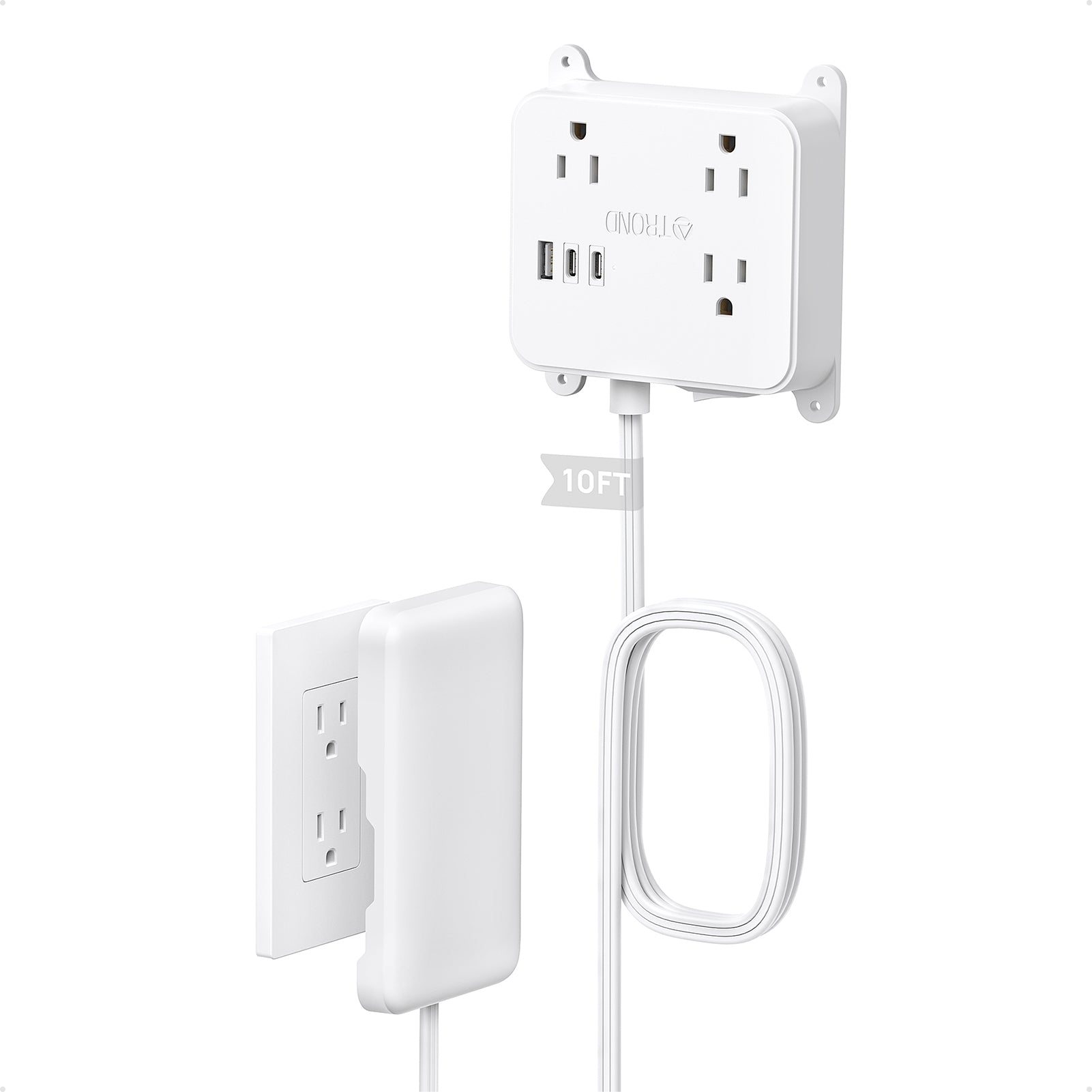 【Multi Wall Outlet Extender with USB】This extension cord with multiple outlets turns 1 socket into 3 outlets, 2 USB C and 1 USB A, which provide power and charging for up to 6 devices simultaneously from a single wall outlet. It would charge your cellphone, laptop, tablet, and cameras without a variety of converters, save your space and make your desktop organized
