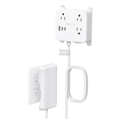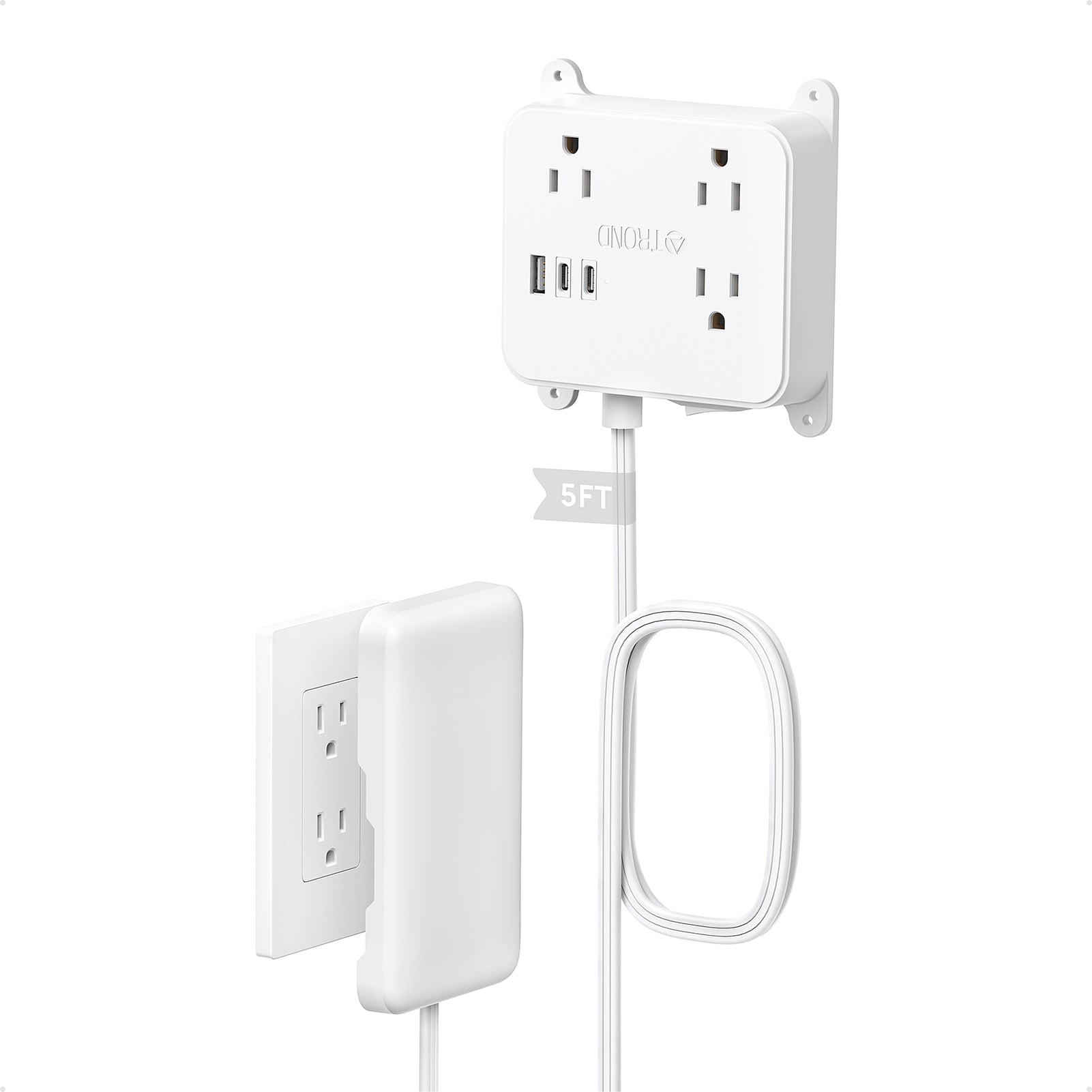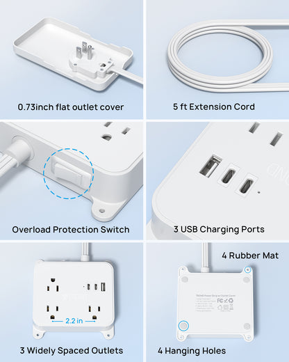 【Outlet Cover Extension Cord】to eliminate bulky plugs and cords, the 5ft power strip with outlet cover provides a sleek solution for managing plugs and cables, you can discreetly and completely hide the entire messy with our outlet cover to create a clutter-free environment and enhance your home décor