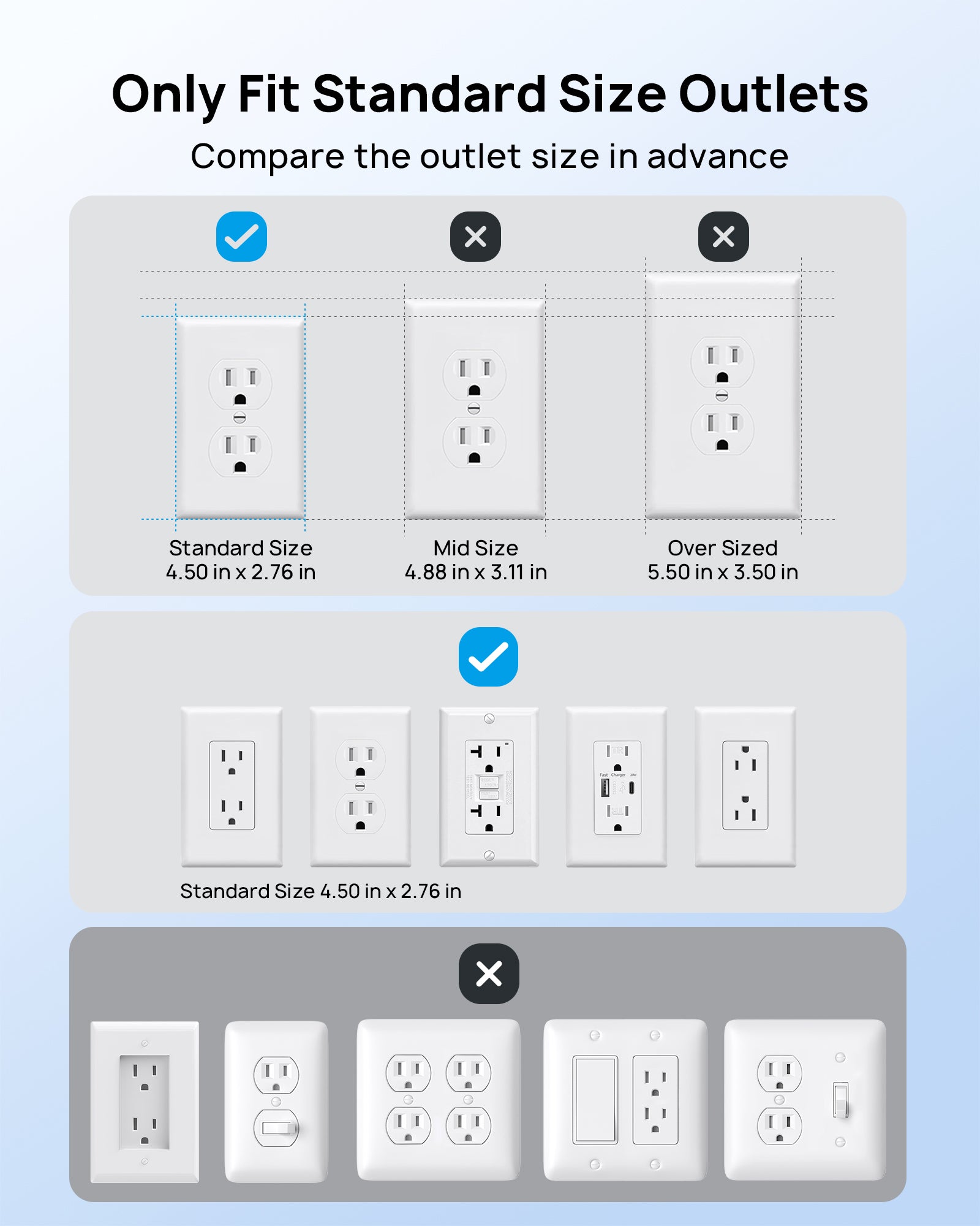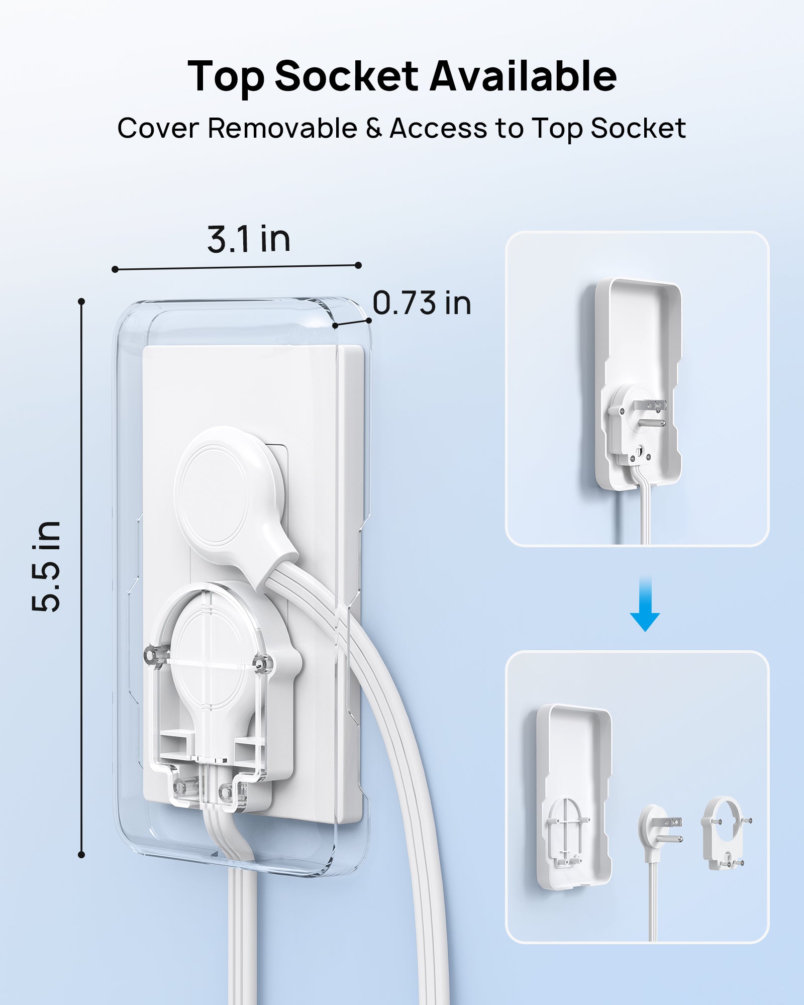 【Protect Away from Sockets】the flat face outlet discreetly conceal the entire wall outlet without protruding wires to be noticed and messy bulky plugs to be touched, effective hiding the sockets to dispel kid and pets' curiosity and prevent pets to chew or scratch cords, or your toddler getting hold of any plugs or cords