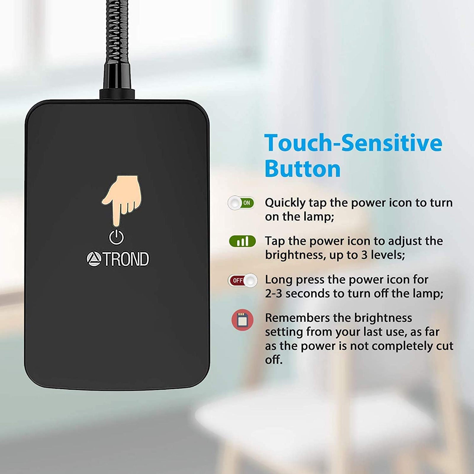 4. 3-level dimmer with integrated memory. Our clamp light has no physical button design. By touching the power icon on the lamp head, you can turn on/off the lamp and adjust 3 different levels of brightness to cater to your various lighting needs. (Important) for the latest inventory, long press for 2 seconds to turn off the lamp, and you don’t need to cycle through the brightness levels; The upgraded memory function remembers the brightness setting from the last use.