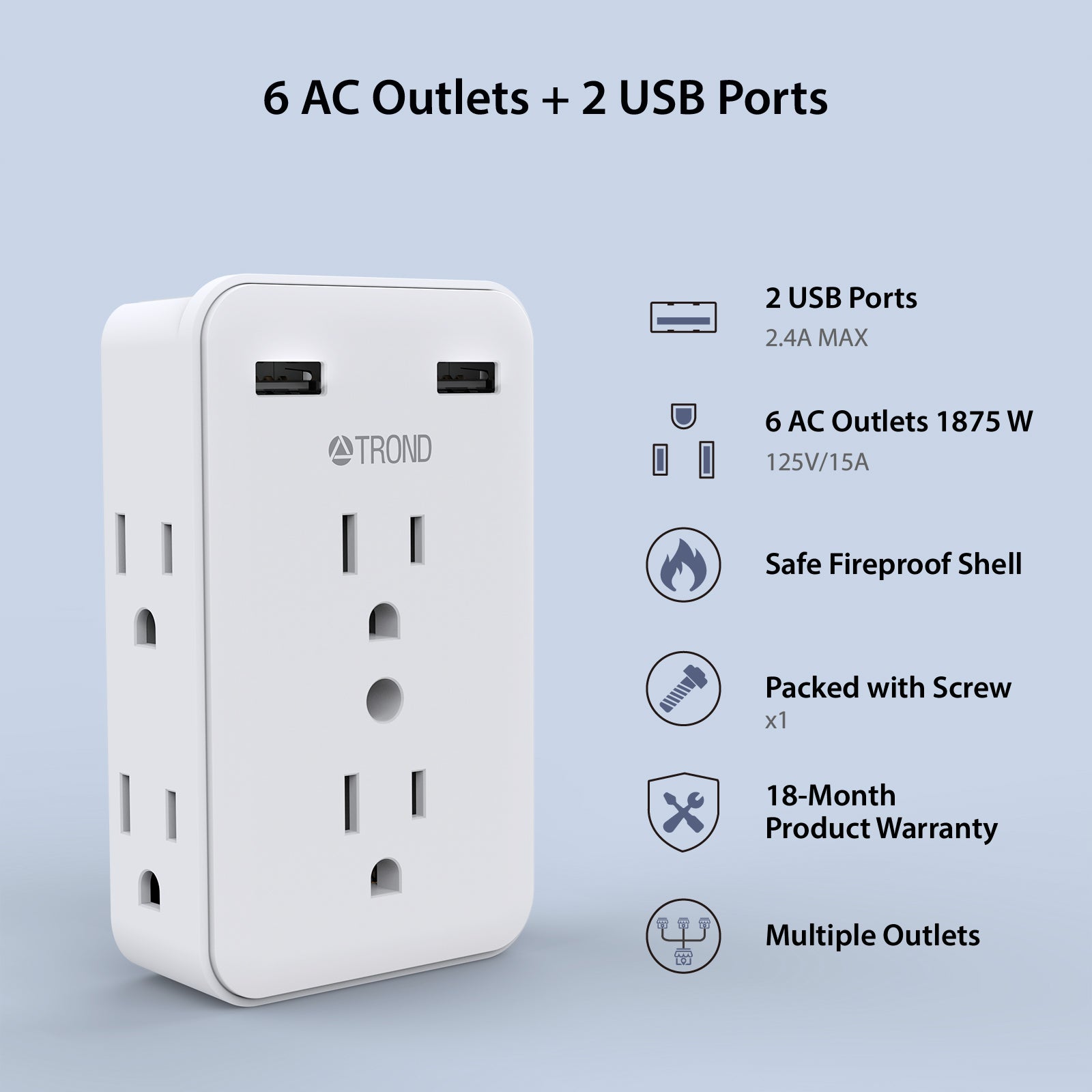 Multi Plug Outlet Extender 6A2U Wall Charger