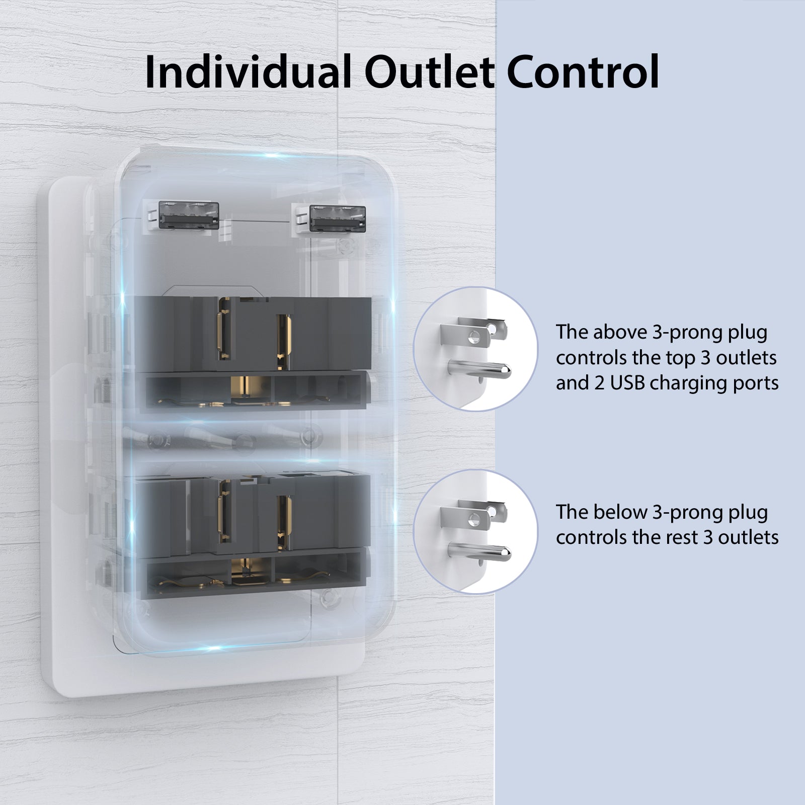 6 AC Outlets: Suitable for 2 or 3 prong flat pin plug.