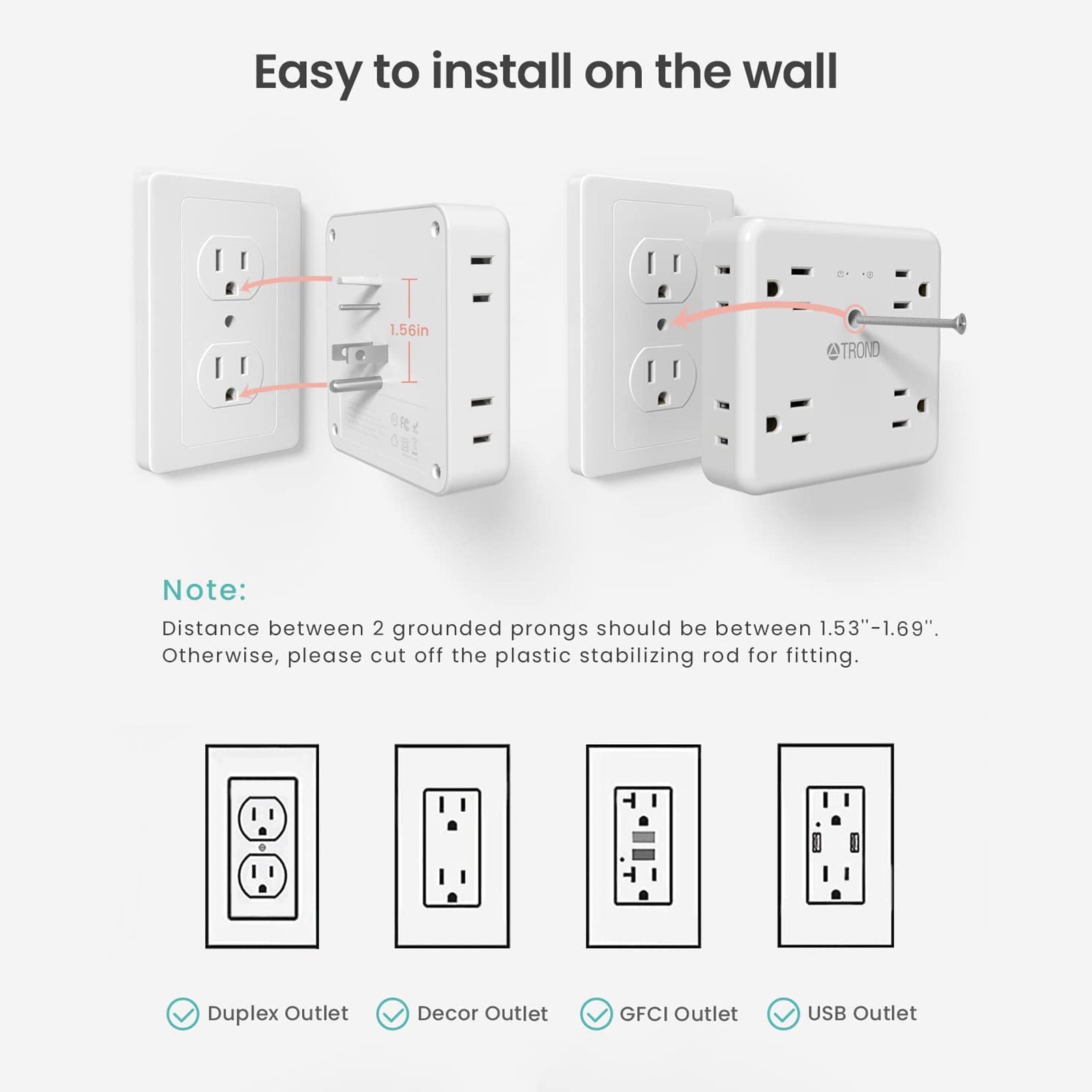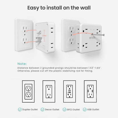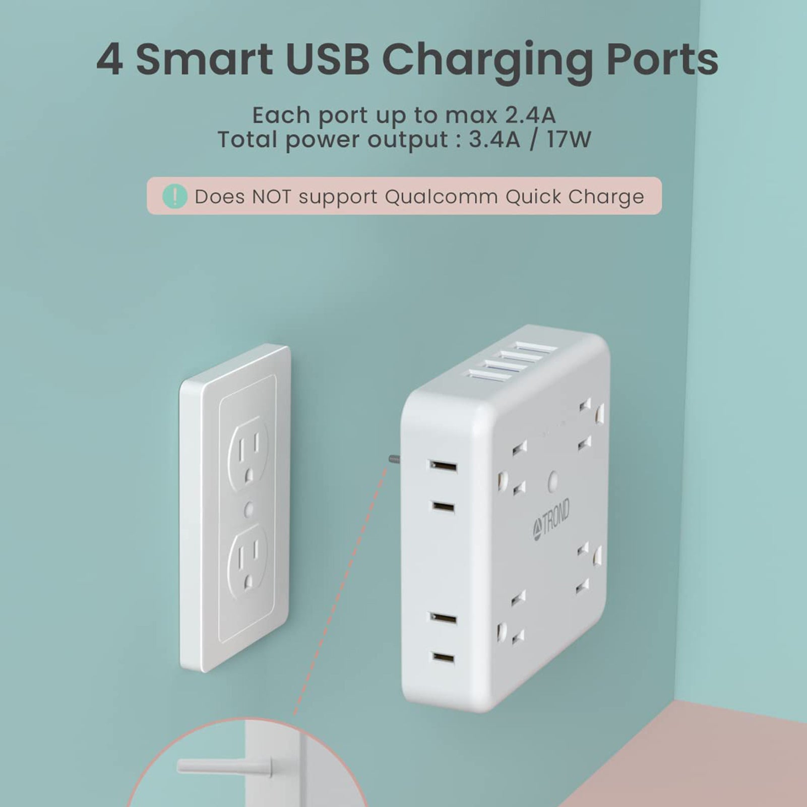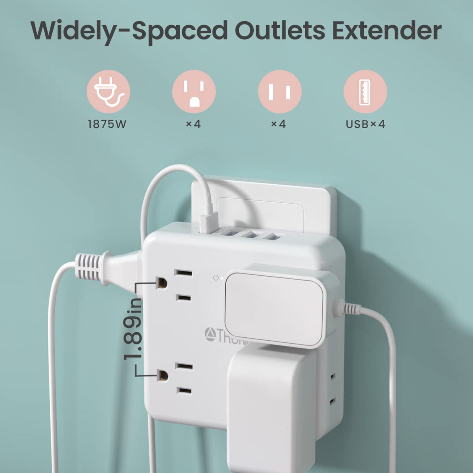 9-in-1 Plug Expander: turns 2 outlets into 8 outlets, 4 USB-A ports
