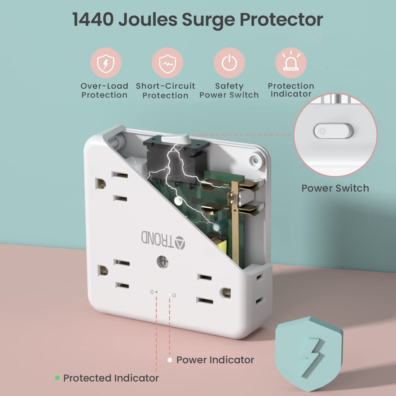 Being your final line of defense, this multiplug with 1440J surge protector protects your expensive electronics such as tv, computer, laptop, internet, etc.