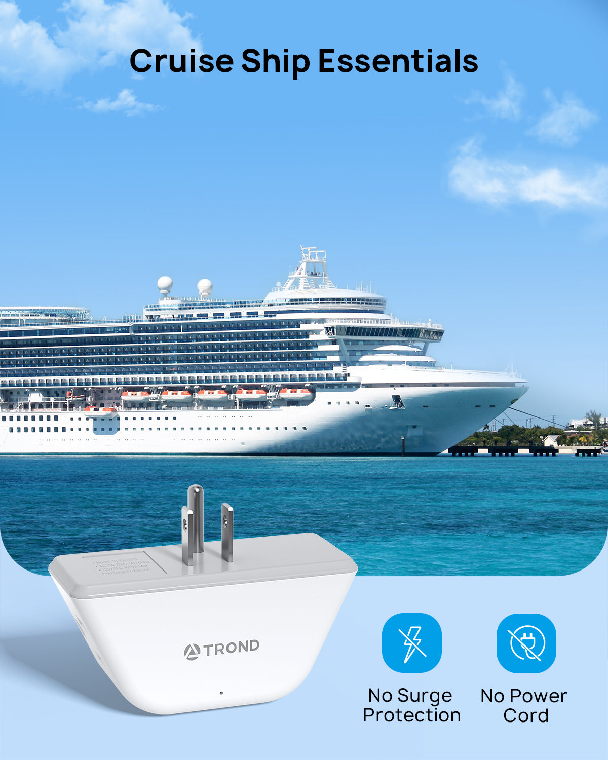 【Cruise Essentials】This multi plug outlet extender has no surge protection and no cords, making it fully cruise ship approved. This outlet splitter solves your problem of using appliances on a cruise.