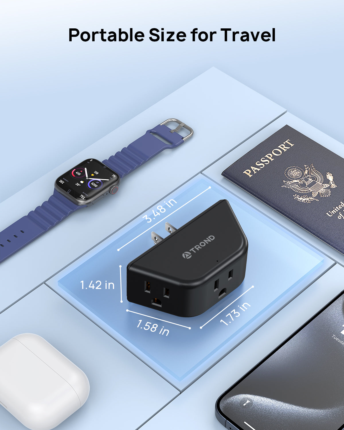 【Small and Mighty】Measuring just 3.48 x 1.73 x 1.42 inches, this compact plug extension outlet is ideal for business trips or travel. Its space-saving design makes it especially suitable for tight spots, such as behind couches or furniture.