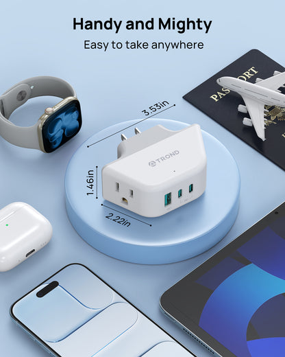 【Handy and Mighty】Measuring just 3.53 x 2.22 x 1.46 inches, this compact plug extension outlet is ideal for business trips or travel. Its space-saving design makes it especially suitable for tight spots, such as behind couches or furniture