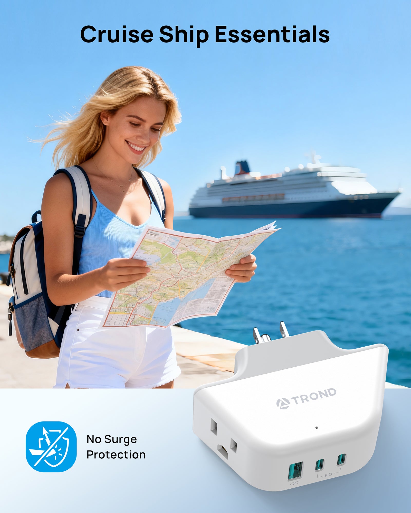 【Cruise Ship Essentials】This multi plug wall outlet does not feature surge protection or cords, making it fully approved for use on cruise ships.
