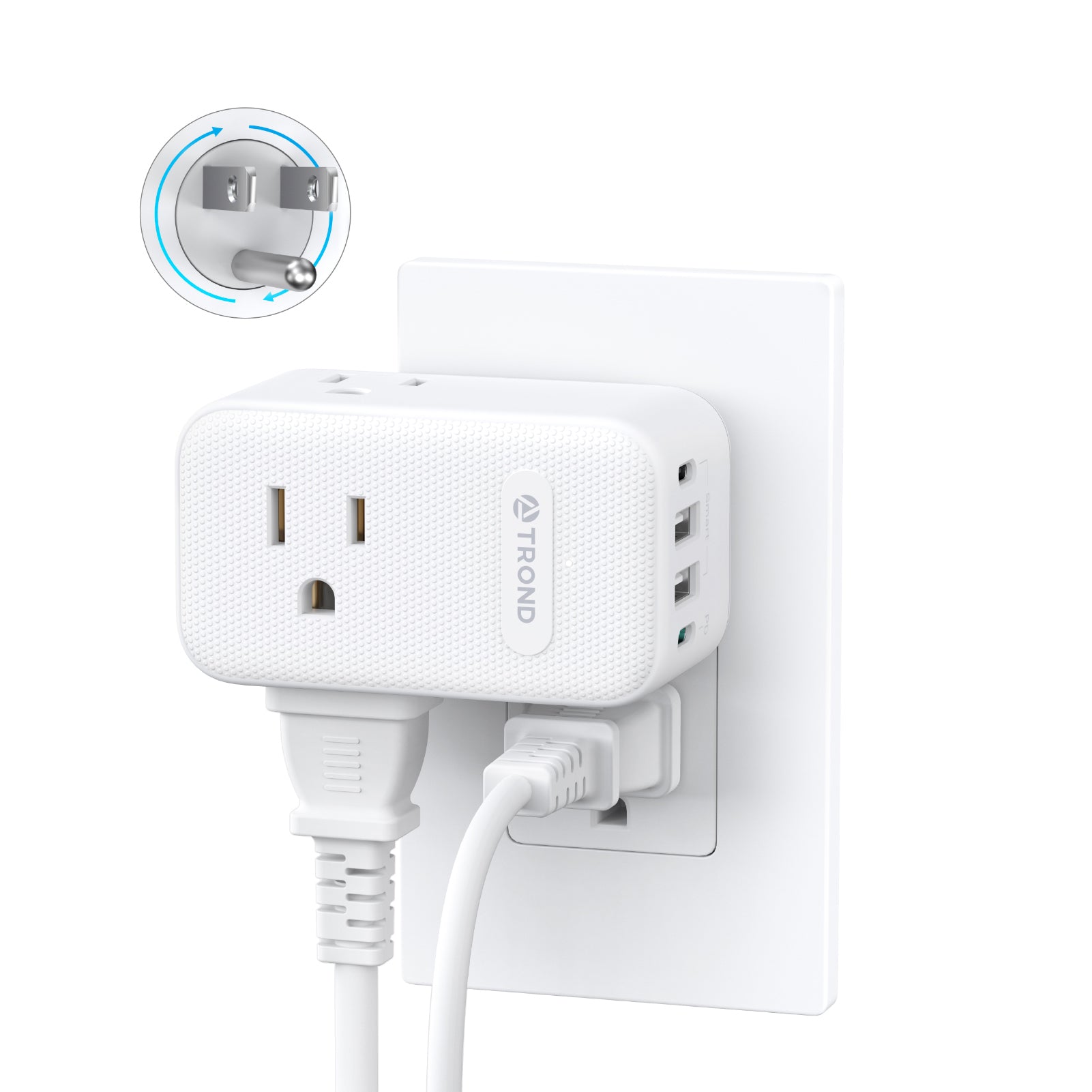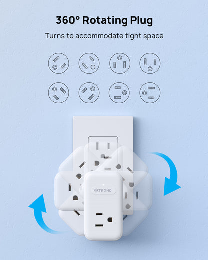 【360°Rotating Plug】Featuring a 360° rotating plug, this outlet expander easily fits into tight spaces behindfurniture. Compatible with both horizontal and verticalreceptacles, it provides unparalleled flexibility and convenience.