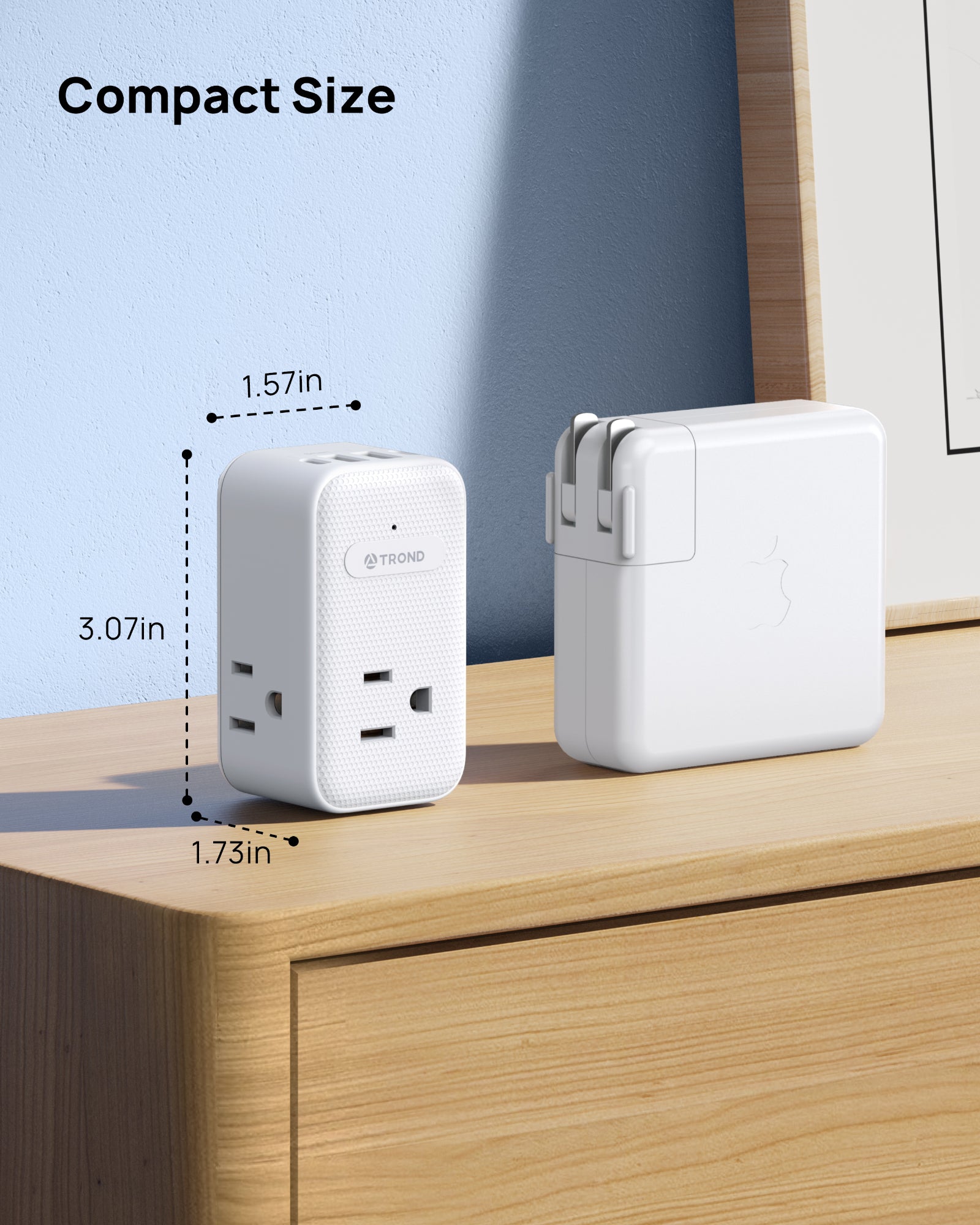 【Small &Travel Friendly】Compact and portable at 3.07x1.73x1.57 inches, this outlet splitter is perfect for business trips and travel. It saves precious luggagace and provides a convenient power solution on the go.