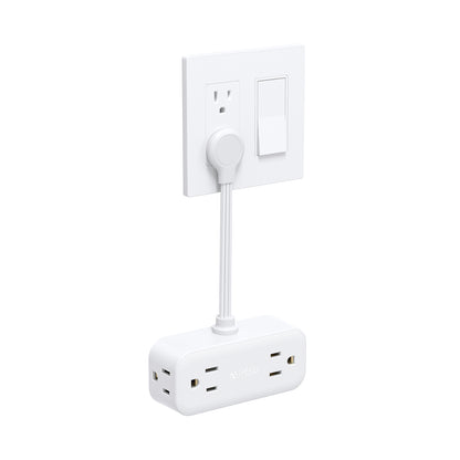 【Flat Outlet Extender with 6 Inch Cord 】This plug extension outlet features an ultra-short 6 inch cable that allows flexible placement, keeping your desktop tidy and free from messy cables. One of its design advantages is its ability to be hung or laid flat according to space requirements. Additionally, this multi outlet adapter does not obstruct the use of switches and other sockets on the distribution board.
