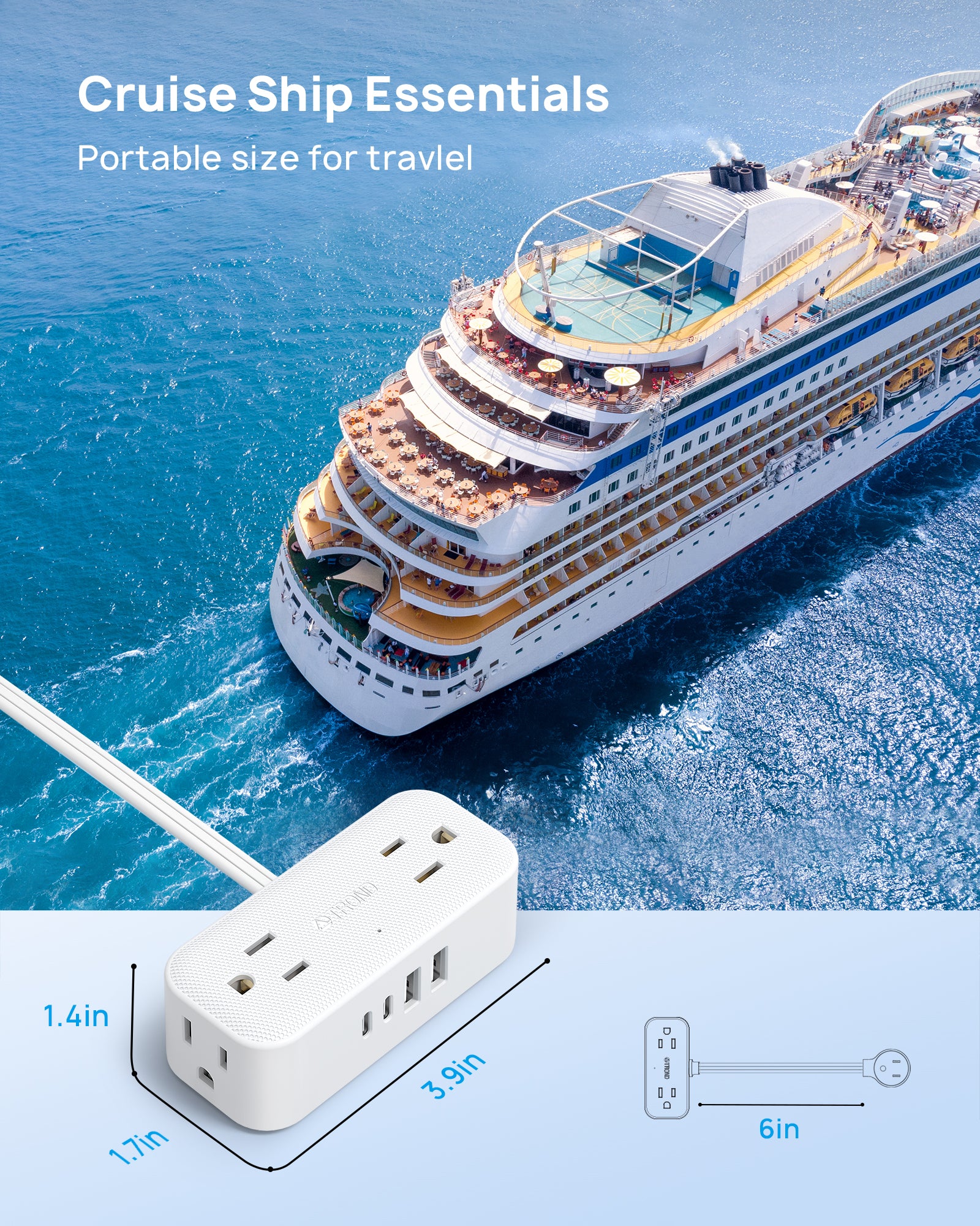 【Travel & Cruise Essentials】Measuring 3.9×1.7×1.4 inches, this plug extender boasts a compact design, making it easy to slip into a briefcase, computer bag, suitcase, or backpack for convenient portability during travel. This multiple plug outlet is cruise-approved and can be brought onboard for use. It effectively solves the problem of using appliances on a cruise. It's simply a lifesaver!