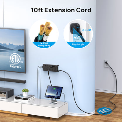 - 【Safety Assurance】This power strip is ETL listed, and made of the top-grade UL94 V-0 flame-retardant material. With 4000J surge protection, this power strip surge protector safeguards your tv, computers, phones & office equipment from potentially damaging power disturbances, creating peace of mind.