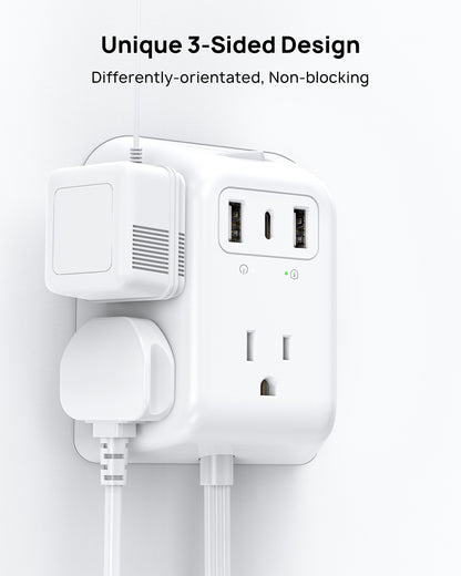 【3-Sided Widely-Space Design】Designed with 0.98in space in between, the outlets on the sides of this power strip with surge protection are all spaced generously apart and go in different orientations, which allows more flexibility when plugging in larger plugs without blocking each other. Unique 3-sided design helps save more space and easily makes plugs not covering any outlets.