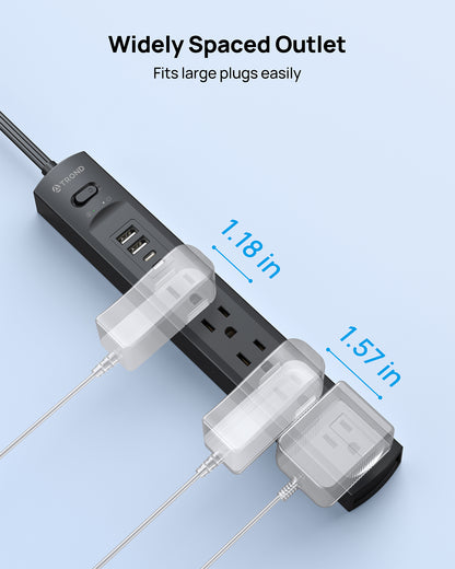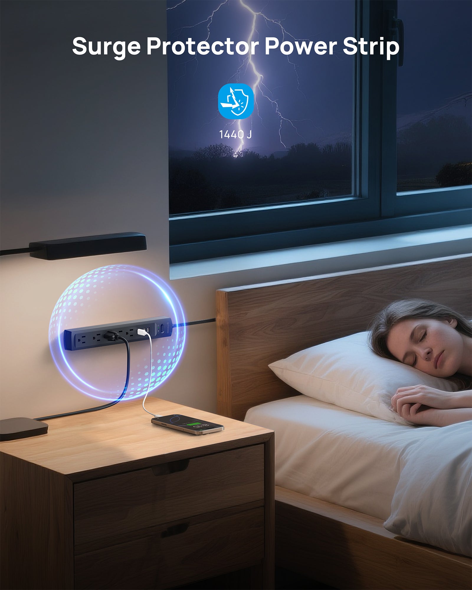 【Power Strips with Surge Protection】The multi outlet surge protector provides multiple safety protections: 1440J surge protection, intelligent overload protection, rapid short-circuit protection, and fire-resistant casing, safeguarding your valuable electronic devices from potential damage caused by power interference