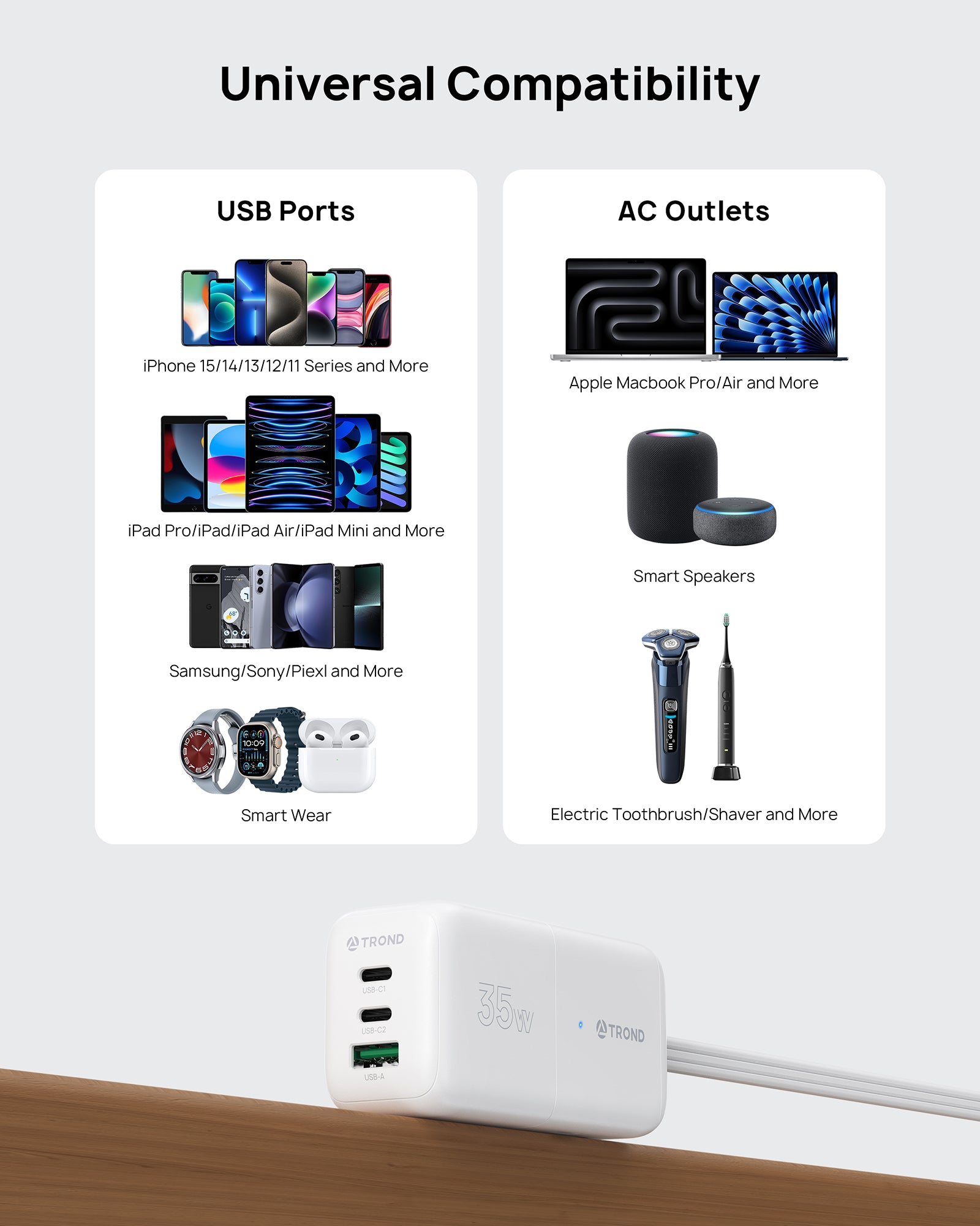 2-in-1 Portable Travel Power Strip. TROND detachable 2-in-1 charging station combines charger and power strip in one, offering an innovative design that can flexibly meet various usage scenarios, whether for home, office or travel, it can provide you with a convenient charging solution.