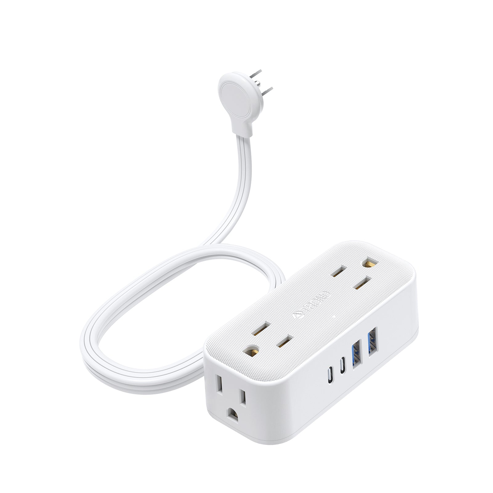 - 【4 Side Design & Wide Spaced Outlets】Slim power strip with 4-side design and each AC outlet with 1.62 in space in between, larger than standard 1.5 inch socket, fit big adapters without blocking each other. Takes up less space on your desk, suitable for the home, office, and dorm room.