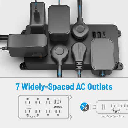 TROND 2 Prong Power Strip, 2 Prong to 3 Prong Adapter with 7 Widely-Spaced AC Outlets