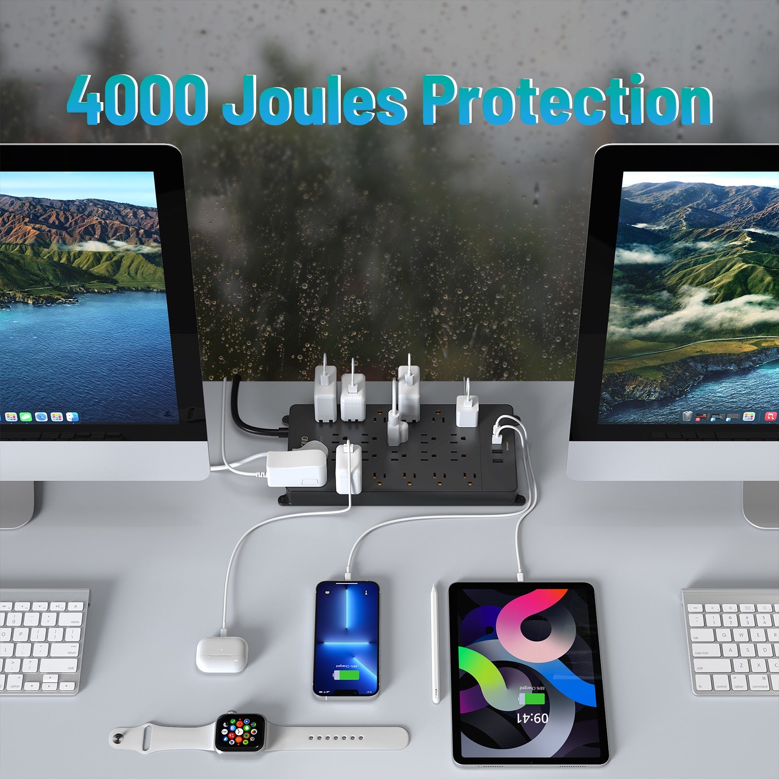 This surge protector power strip has 4000J surge protection. Ombining surge protection, overload protection, grounded protection to offer comprehensive safety for you and your devices.