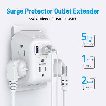 USB Wall Charger Surge Protector 5 Outlet Extender and 3 USB Charging Ports